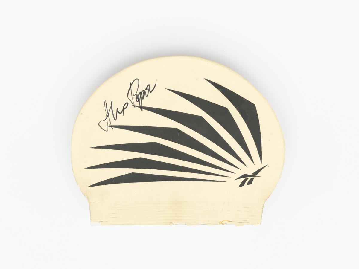 Atlanta 1996, bonnet de bain signé par Aleksander POPOV (RUS), champion olympique de 100m libre et 50m libre, médaillé d'argent dans le relais 4 x 100m nage libre.