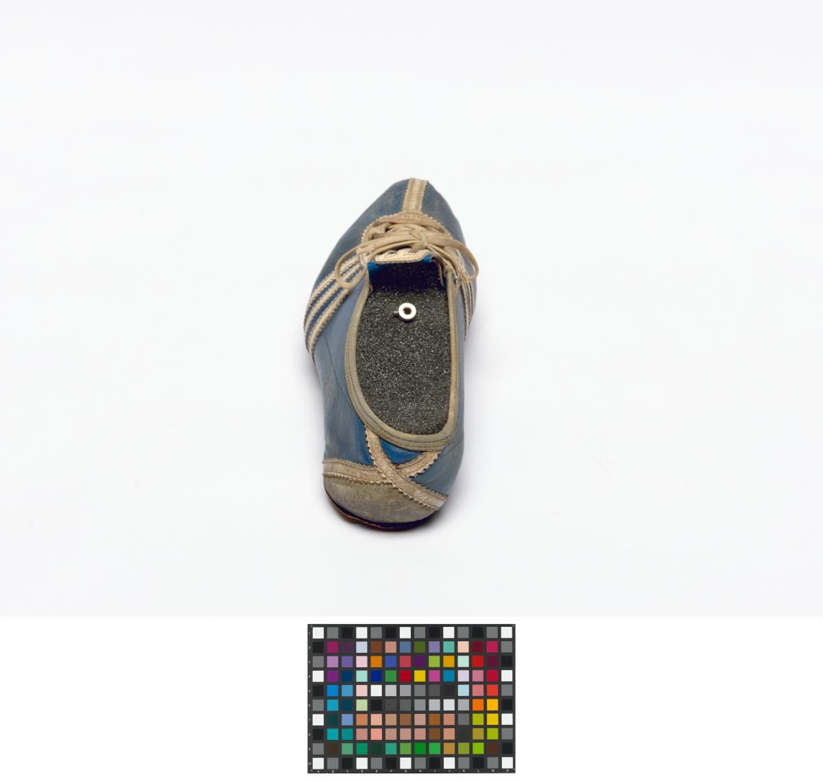 Chaussure gauche avec les trois bandes blanches et 6 pointes.