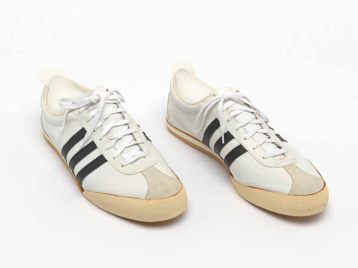 Mexico 1968, réplique des chaussures Adidas pour le lancer du disque utilisées par Alfred OERTER (USA) champion olympique.