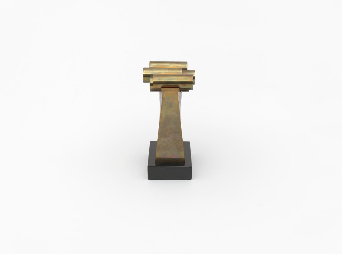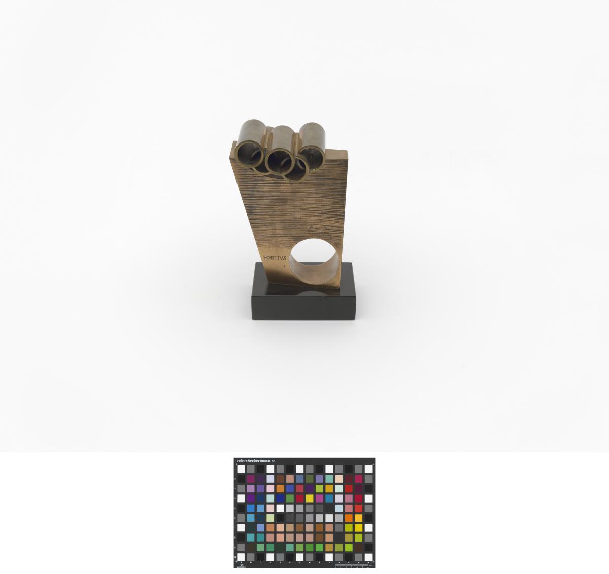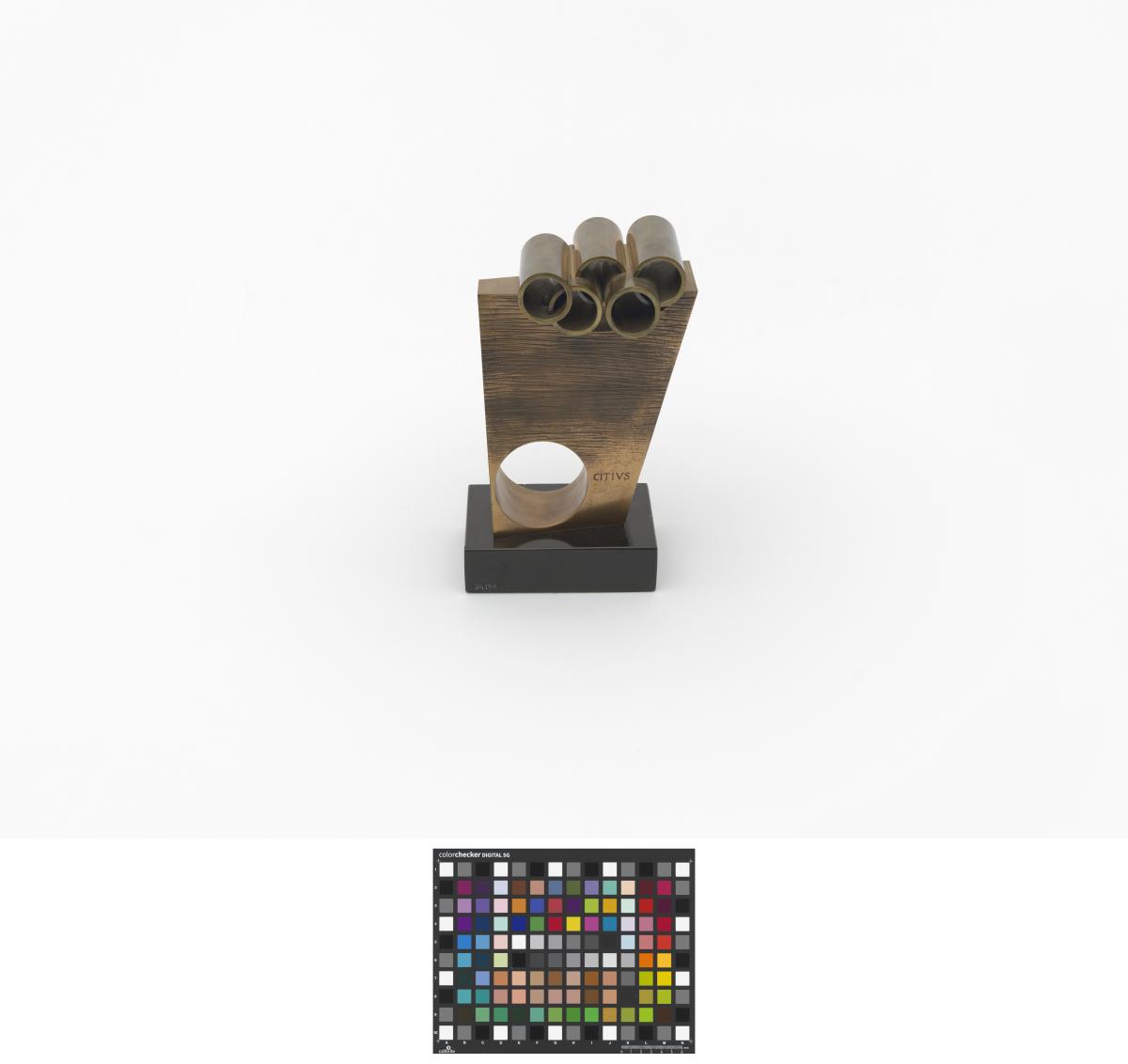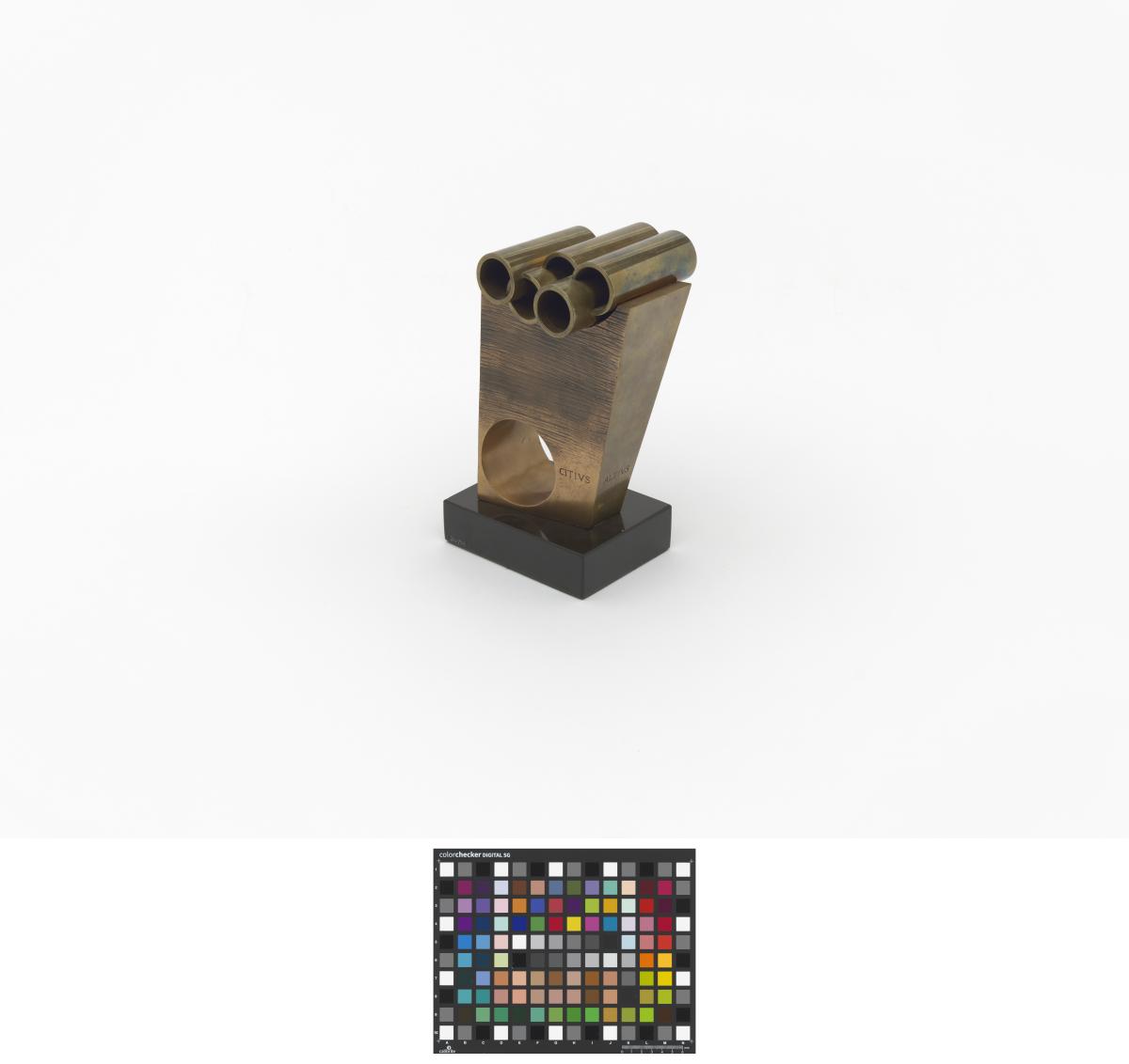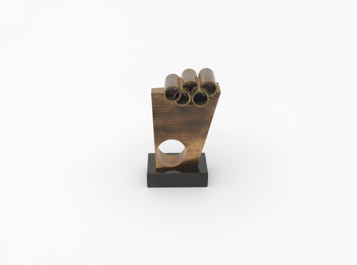 SUBIRACHS, Josep Maria. Ianua. Masse plus ou moins rectangulaire percée d'un trou circulaire et surplombée par les anneaux olympiques.