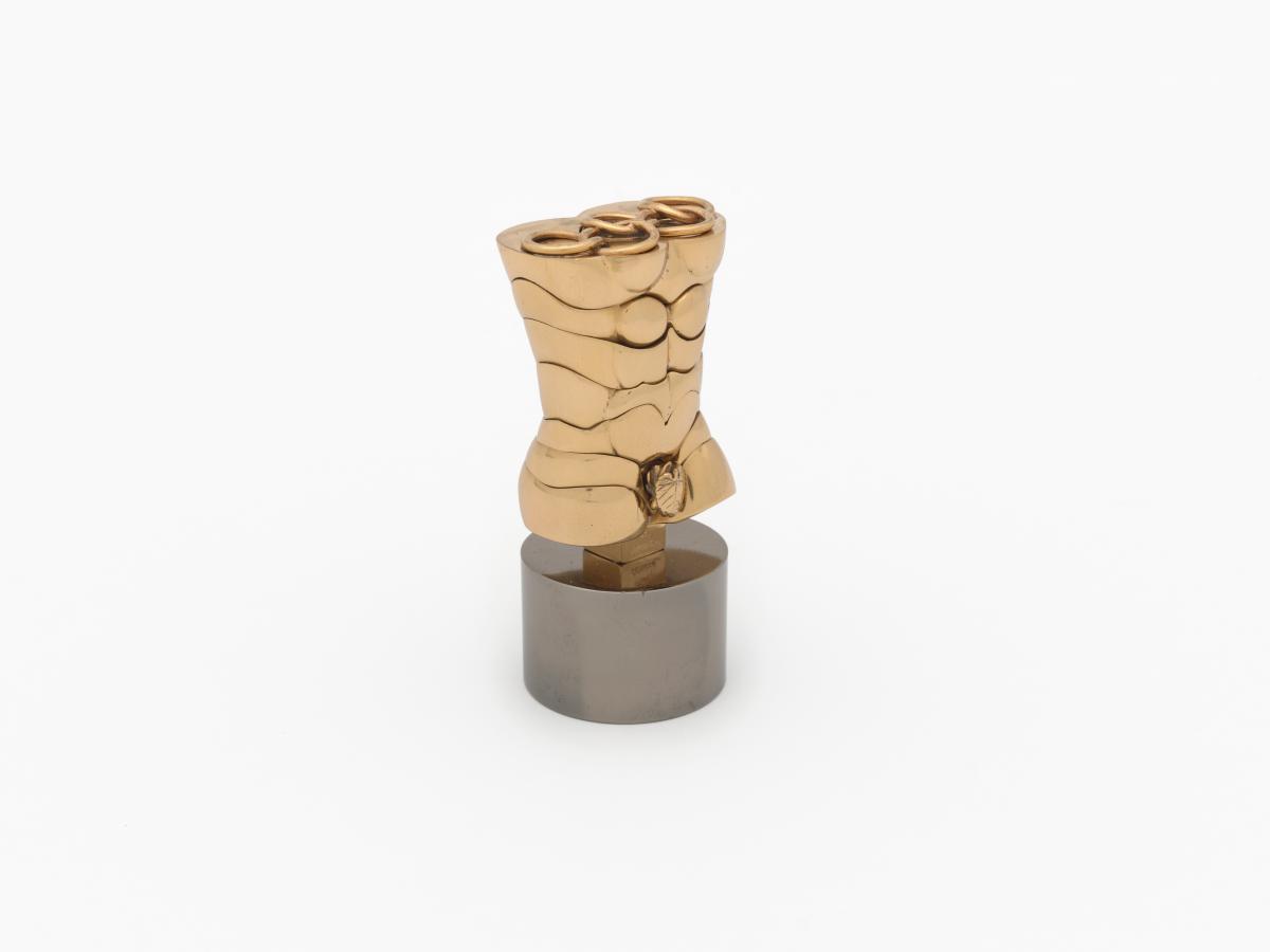 Sculpture composée de 10 pièces démontables avec mécanisme simple de verrouillage, situé dans la partie inférieure du socle, permet de libérer l’axe de la sculpture, terminé par les cinq anneaux olympiques qui servent de dispositif de fermeture. Signé: Berrocal. Exemplaire numéroté, série limitée /250. Pays de provenance incertain, sans doute Italie car Berrocal dirigeait une fonderie à Negrar près de Vérone.