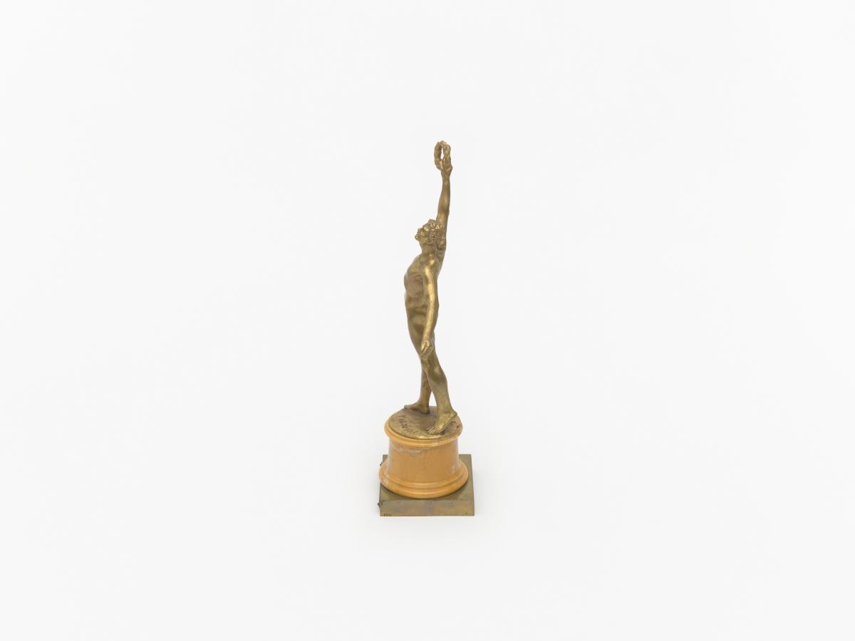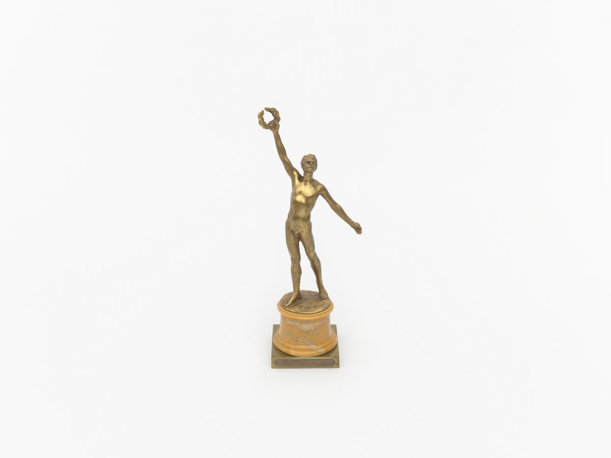 Aux yeux du comité d’organisation, une médaille ne semblait pas suffire. Chaque champion olympique dans les épreuves individuelles reçurent donc, en plus d’une médaille en vermeil et d’un diplôme, une petite statuette représentant un athlète brandissant une couronne de laurier, œuvre du sculpteur Léandre Grandmoulin. Le dessin fut soumis au Comité International Olympique qui l'approuva et le moule plus tard détruit pour éviter les reproductions.