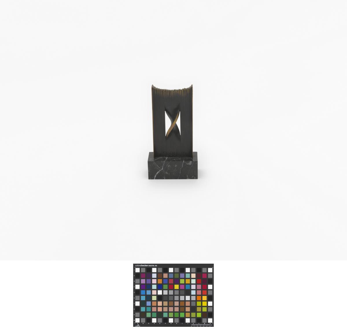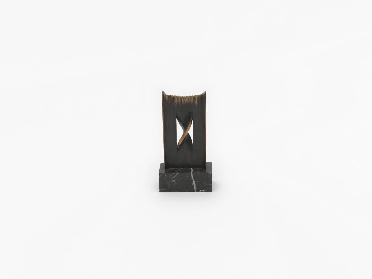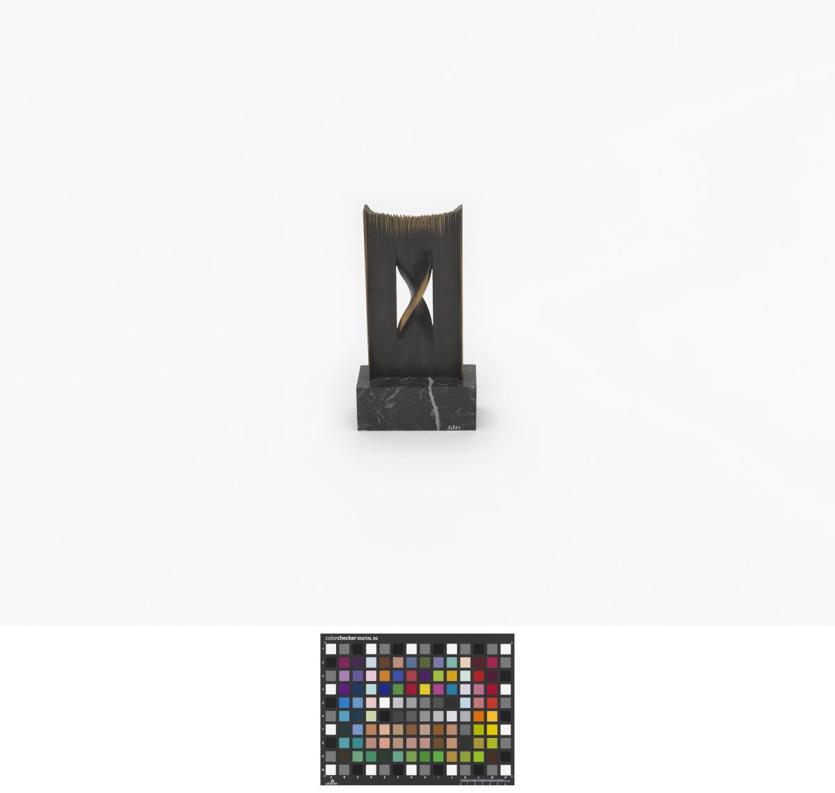 Masse rectangulaire avec une spirale au centre. Ruban de Möbius, une surface sans début ni fin qui semble avoir une seule face. Réplique en bronze, de petit format, de l'œuvre monumentale "Olympic Movement Monument - Rendez vous in Seoul" réalisé par Man-Lin Choi et Josep Maria Subirachs. en 1989 dans la ville sud-coréenne de Séoul. Pays de fabrication incertain.