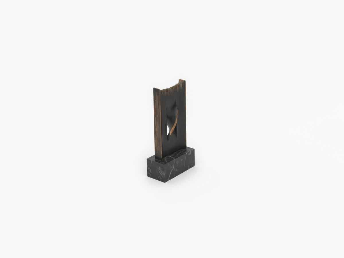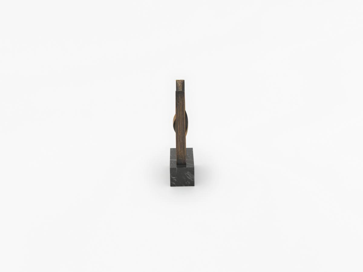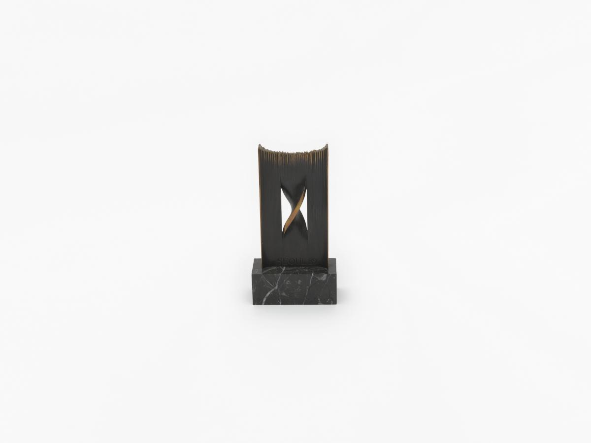 Masse rectangulaire avec une spirale au centre. Ruban de Möbius, une surface sans début ni fin qui semble avoir une seule face. Réplique en bronze, de petit format, de l'œuvre monumentale "Olympic Movement Monument - Rendez vous in Seoul" réalisé par Man-Lin Choi et Josep Maria Subirachs. en 1989 dans la ville sud-coréenne de Séoul. Pays de fabrication incertain.
