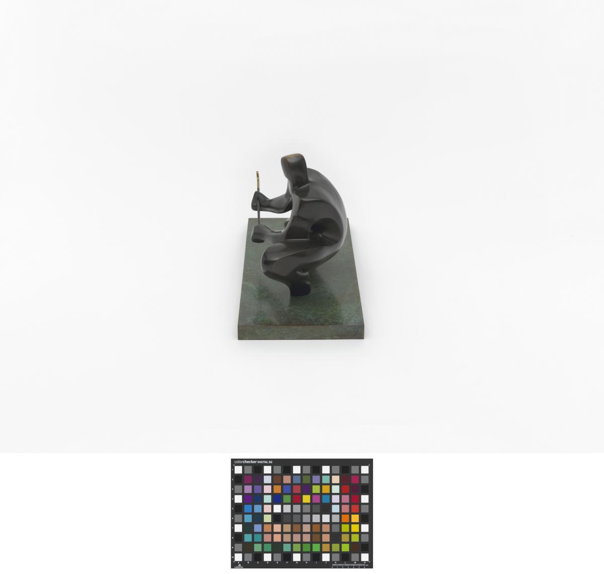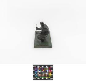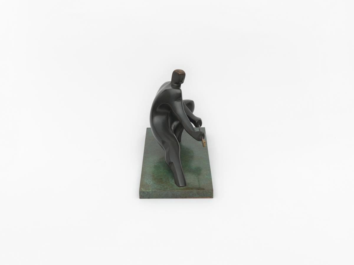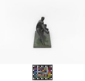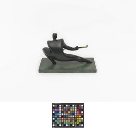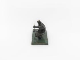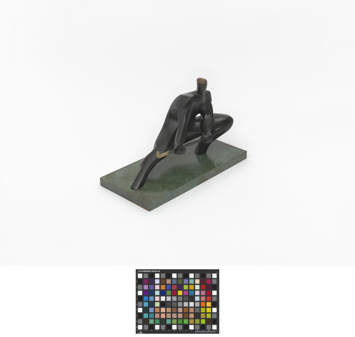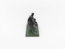 Sur le socle , plaquette avec légende: "Le CIO à la F.I.H. tournoi olympique 1992". Signé: Rosa Serra. Bronze patiné passé à l'or brillant pour les accessoires.