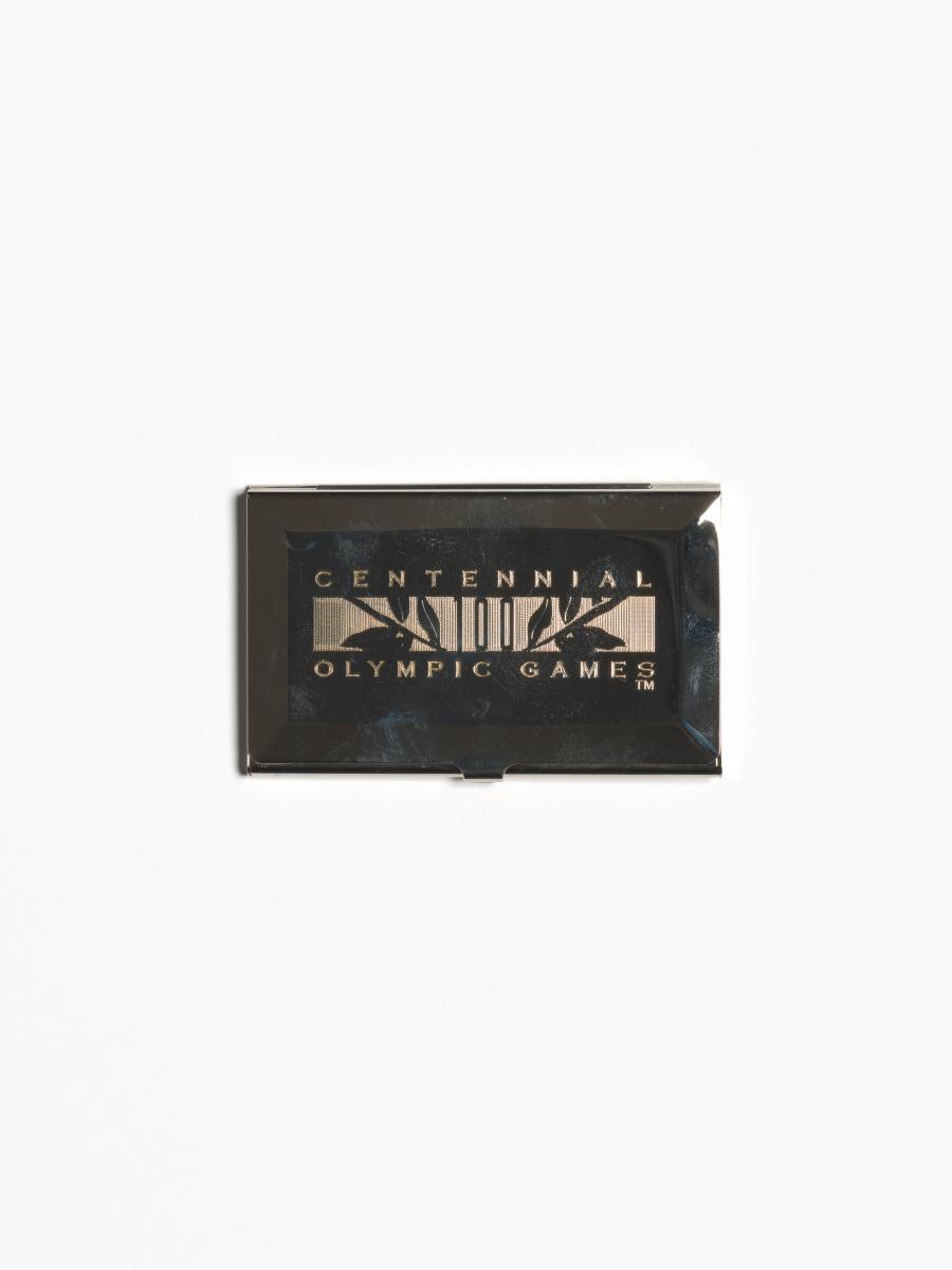 Atlanta 1996, boîtier métallique pour cartes de crédit et de visite avec le logo du Centenaire.