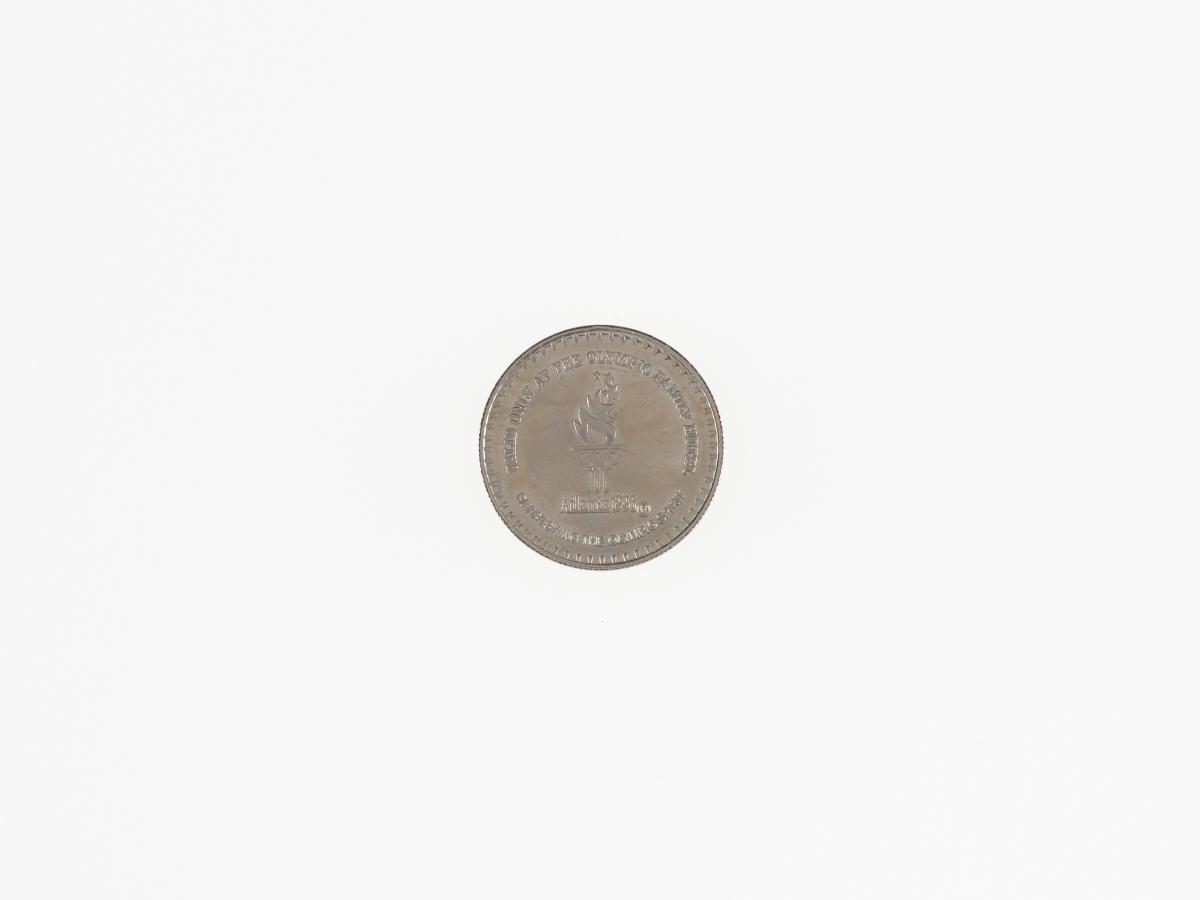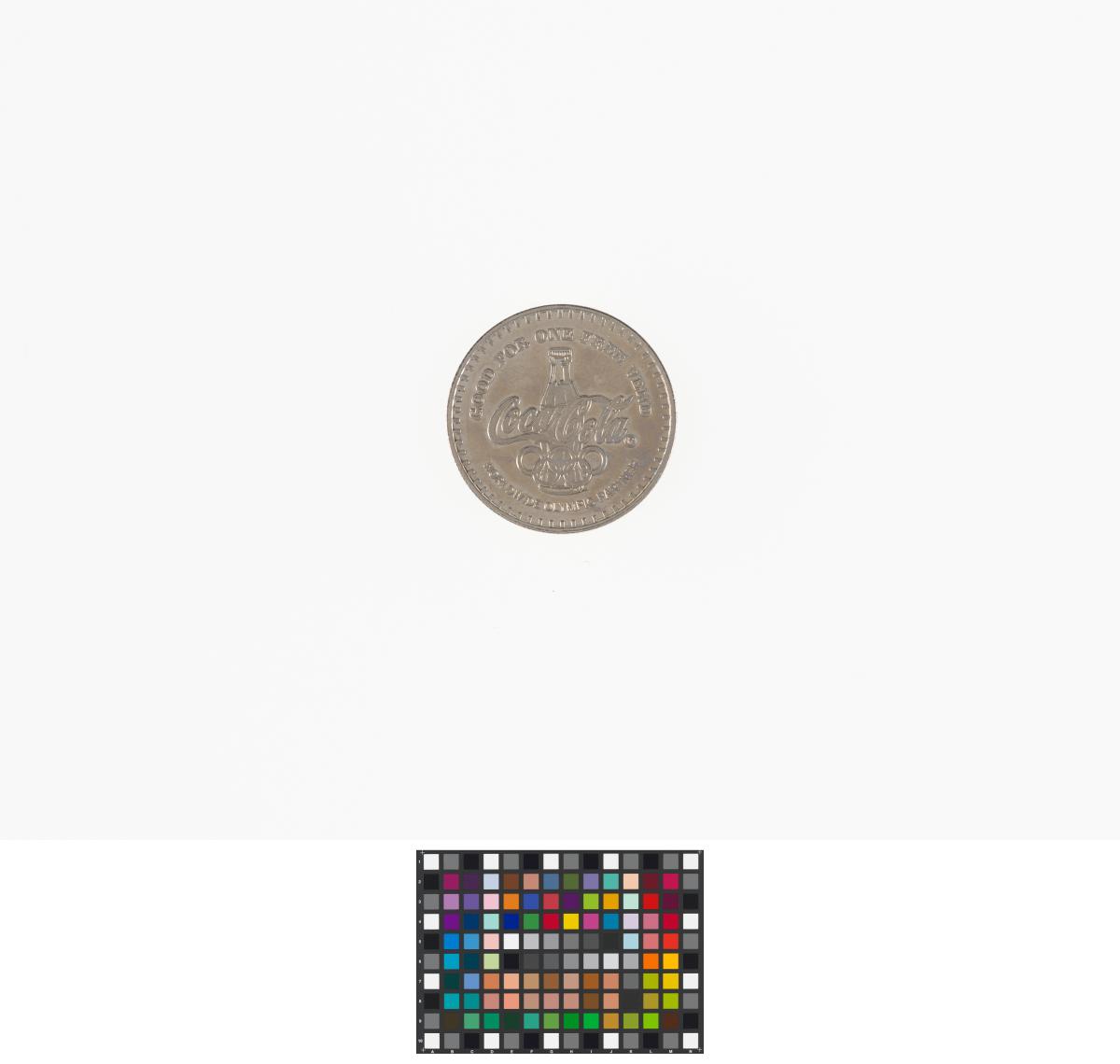 D'un côté du jeton l'emblème des Jeux et la légende: "Centennial Olympic Games". Et de l'autre côté le logo de Coca-Cola, le nom de "Marriott Marquis hotel", et la légende: "Good for one free vend".