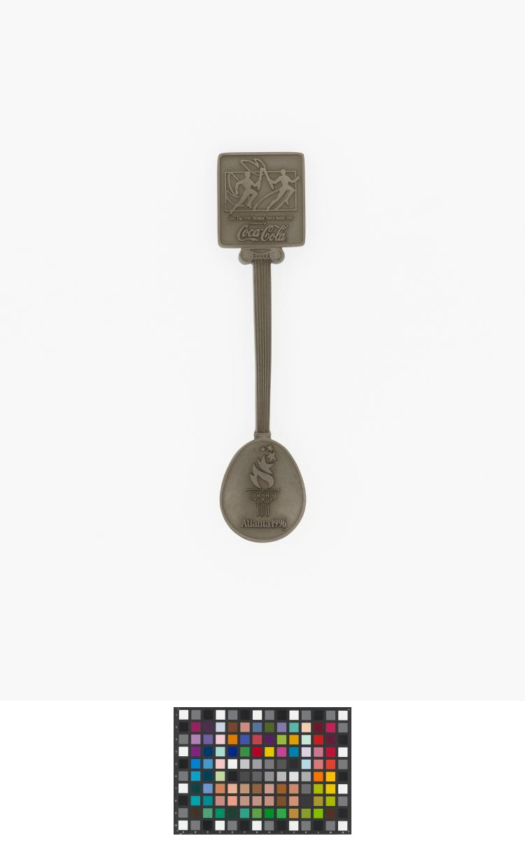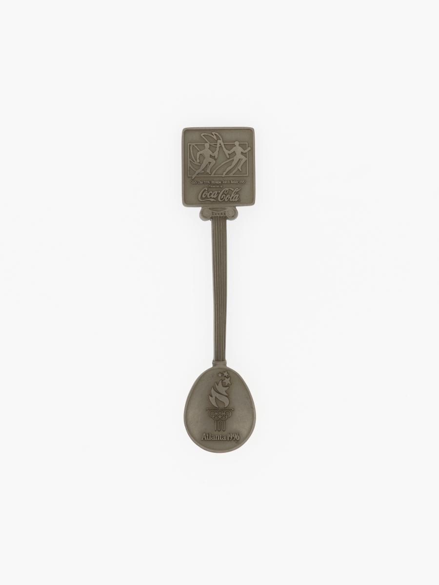 Atlanta 1996, cuillère avec le pictogramme du relais de la flamme olympique et l'emblème des Jeux.