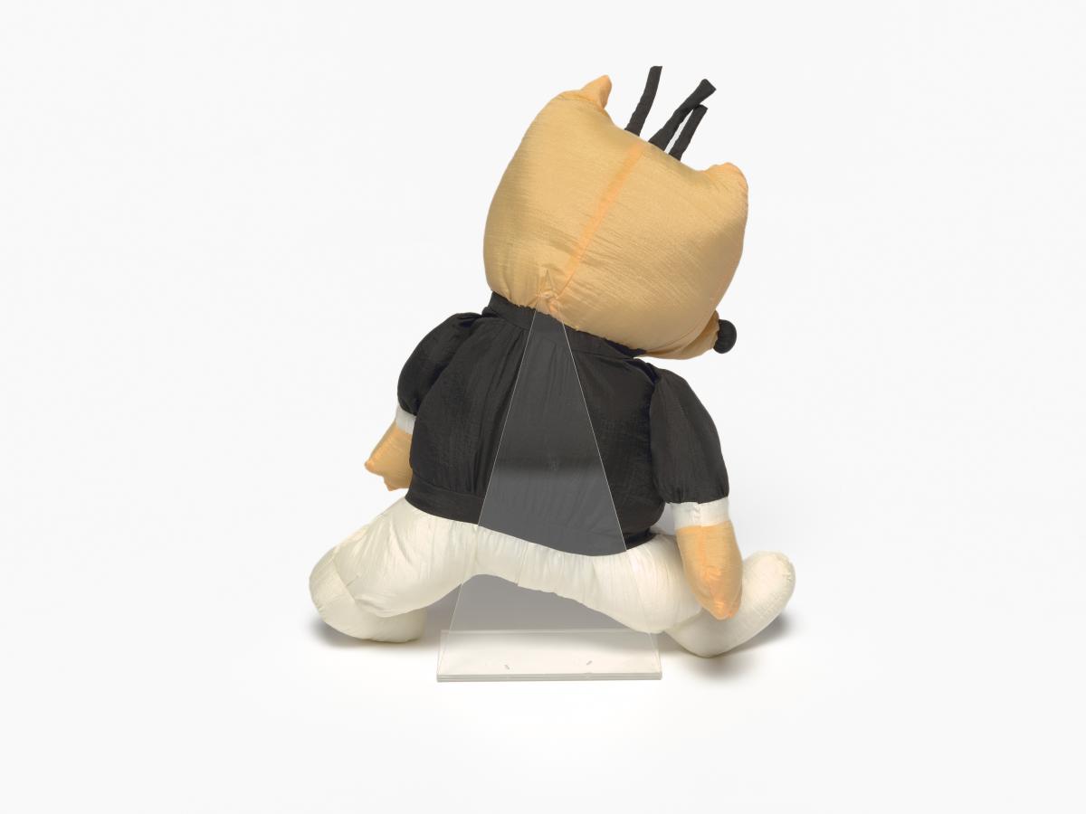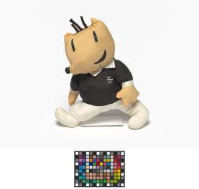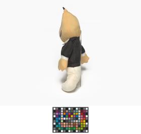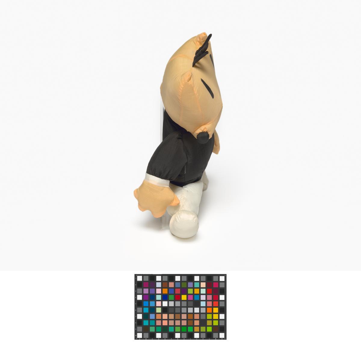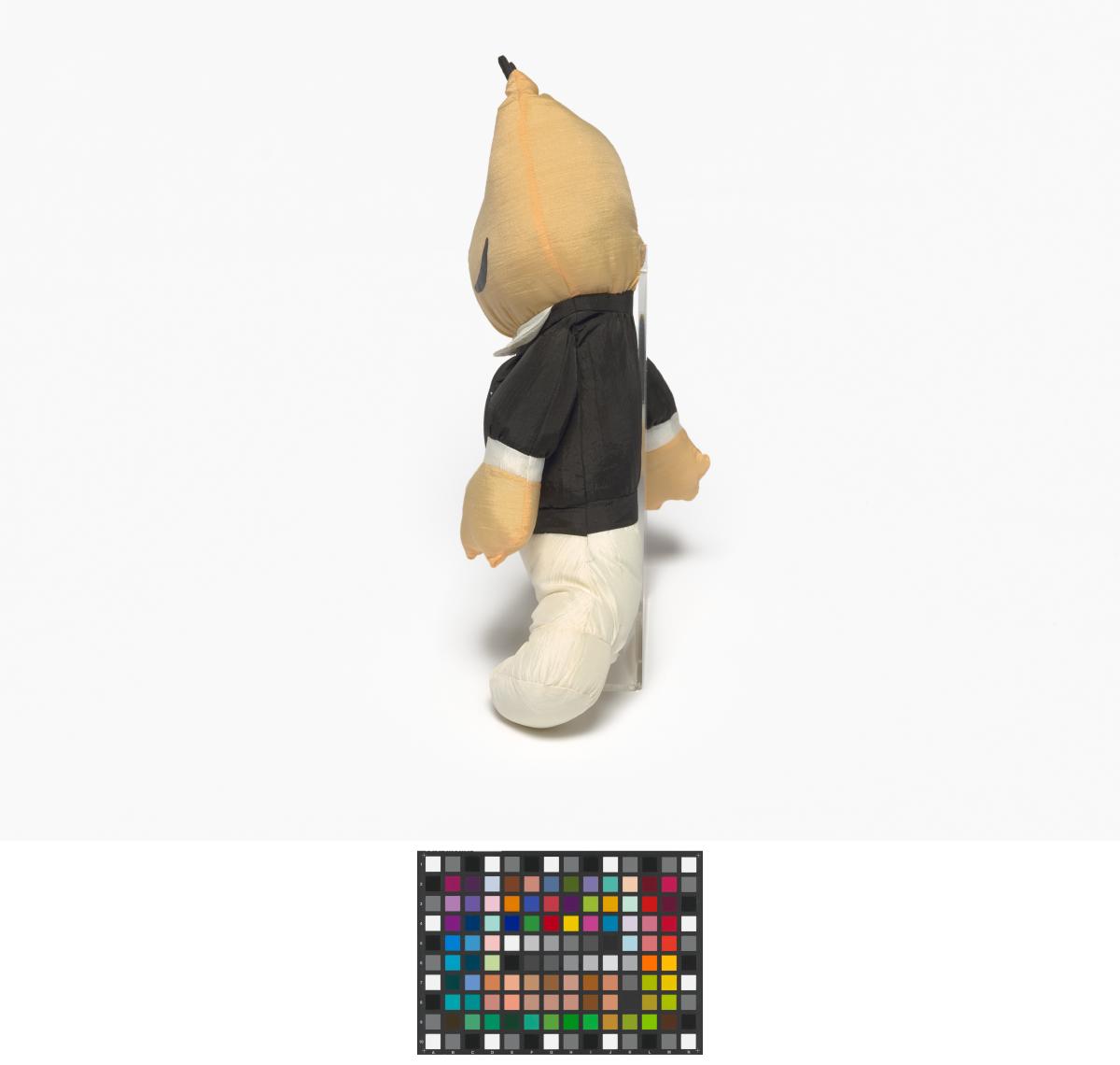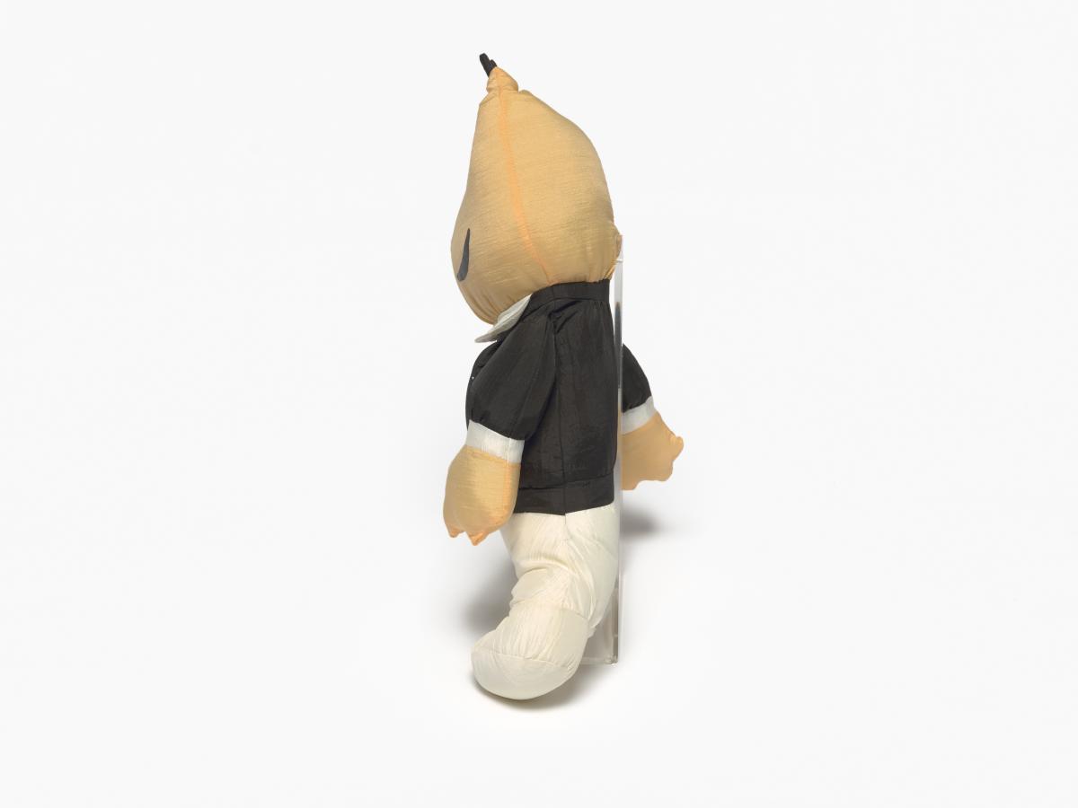 Mascotte en peluche portant une tenue d'arbitre.