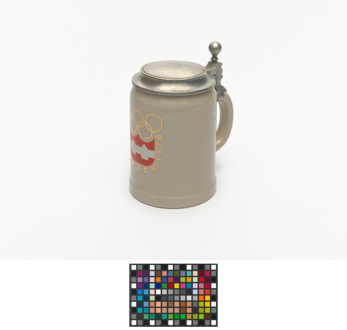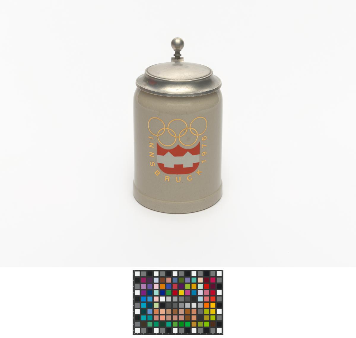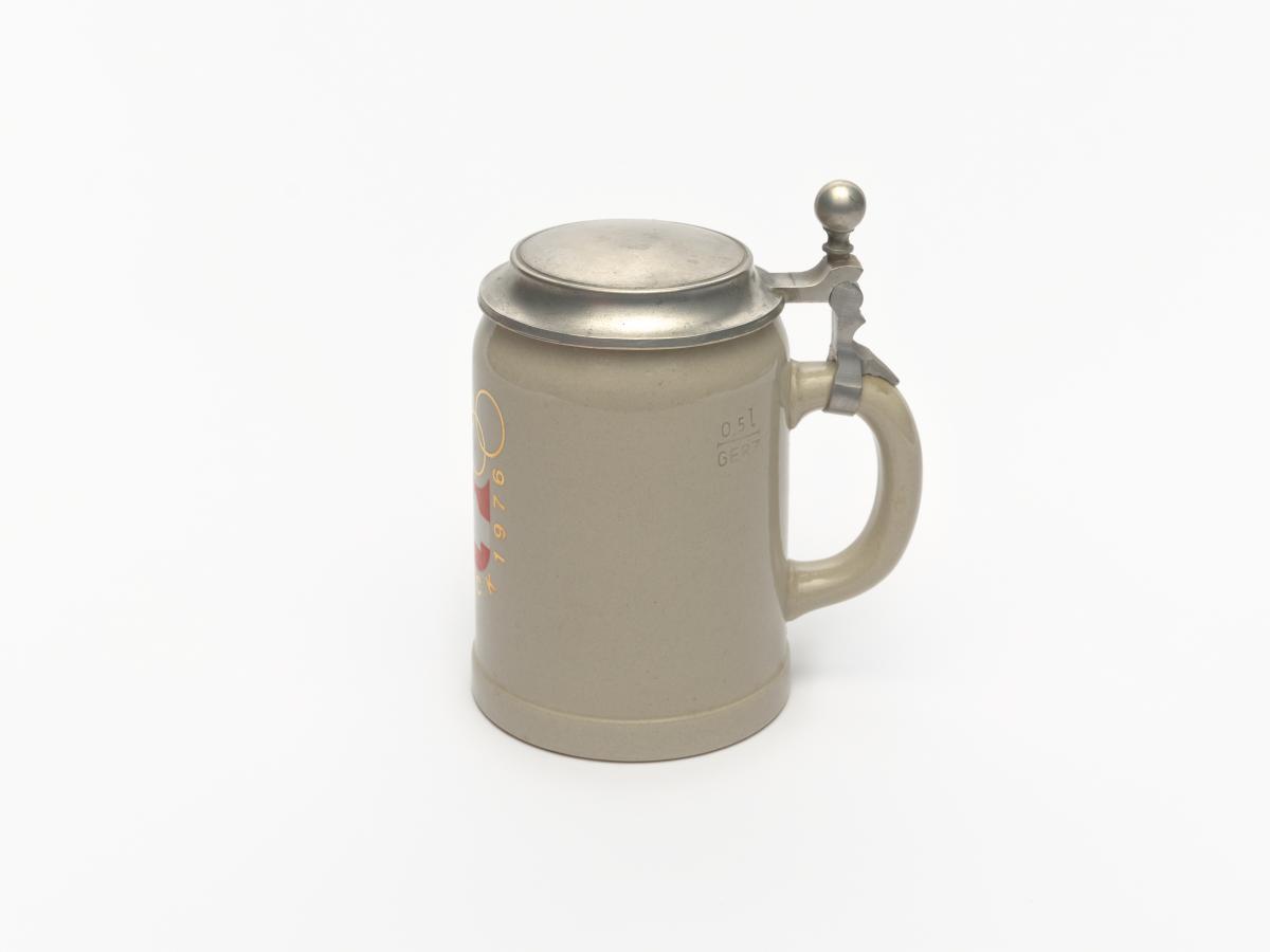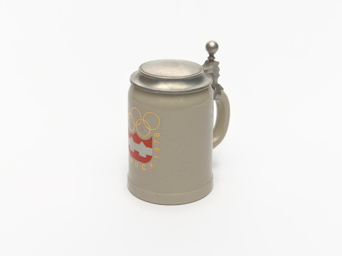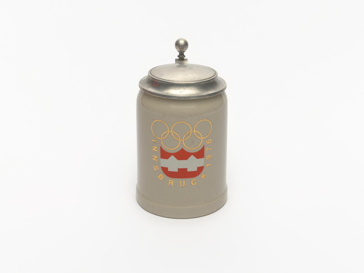 Innsbruck 1976, chope à couvercle avec l'emblème des Jeux.