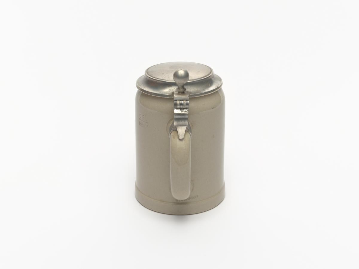 Emblème des Jeux sur la panse et couvercle en étain.