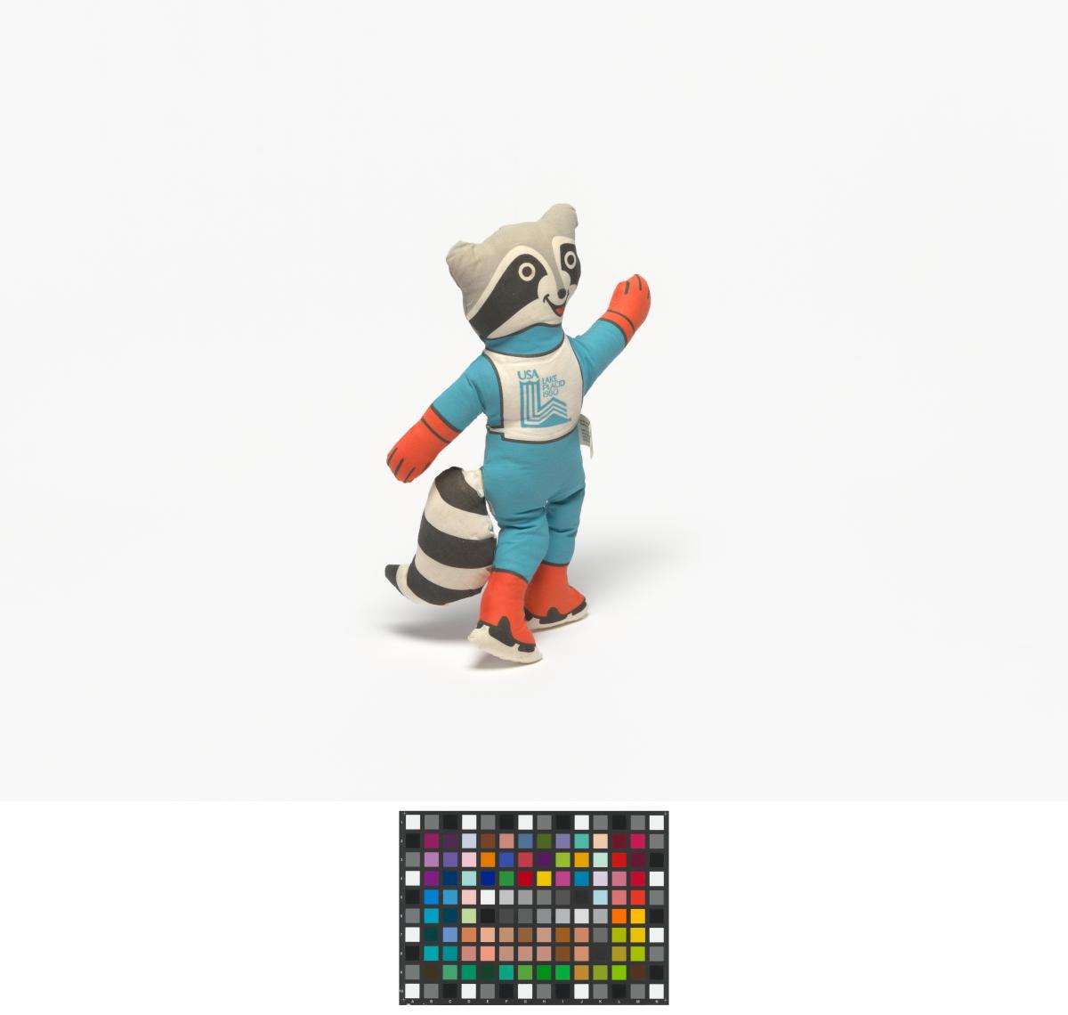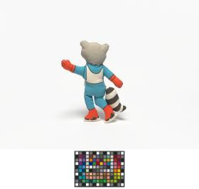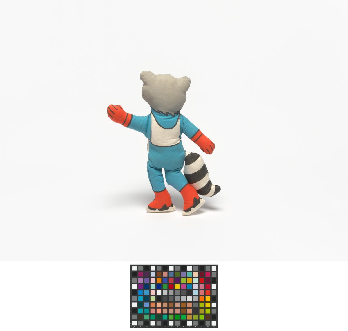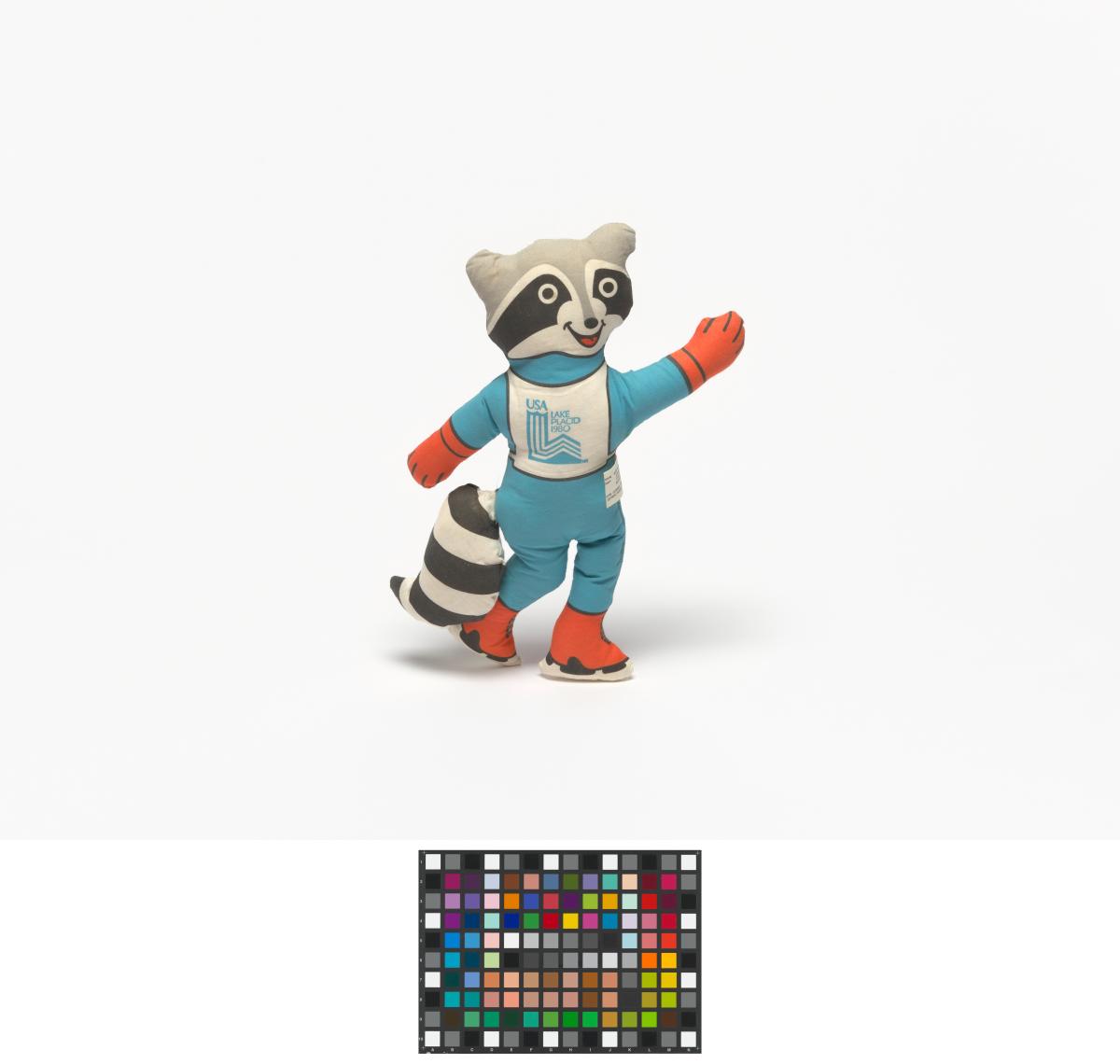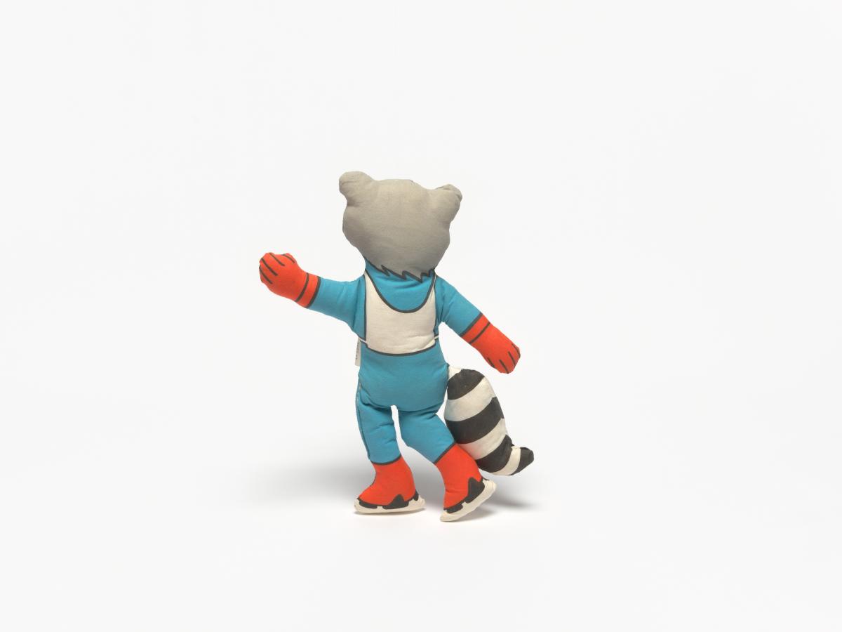 Mascotte représentant un raton-laveur. Il porte un dossard avec l'emblème des Jeux.