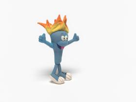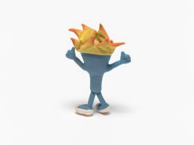 Pyrsos, la mascotte du Musée Olympique avec les bras levés en signe de victoire.