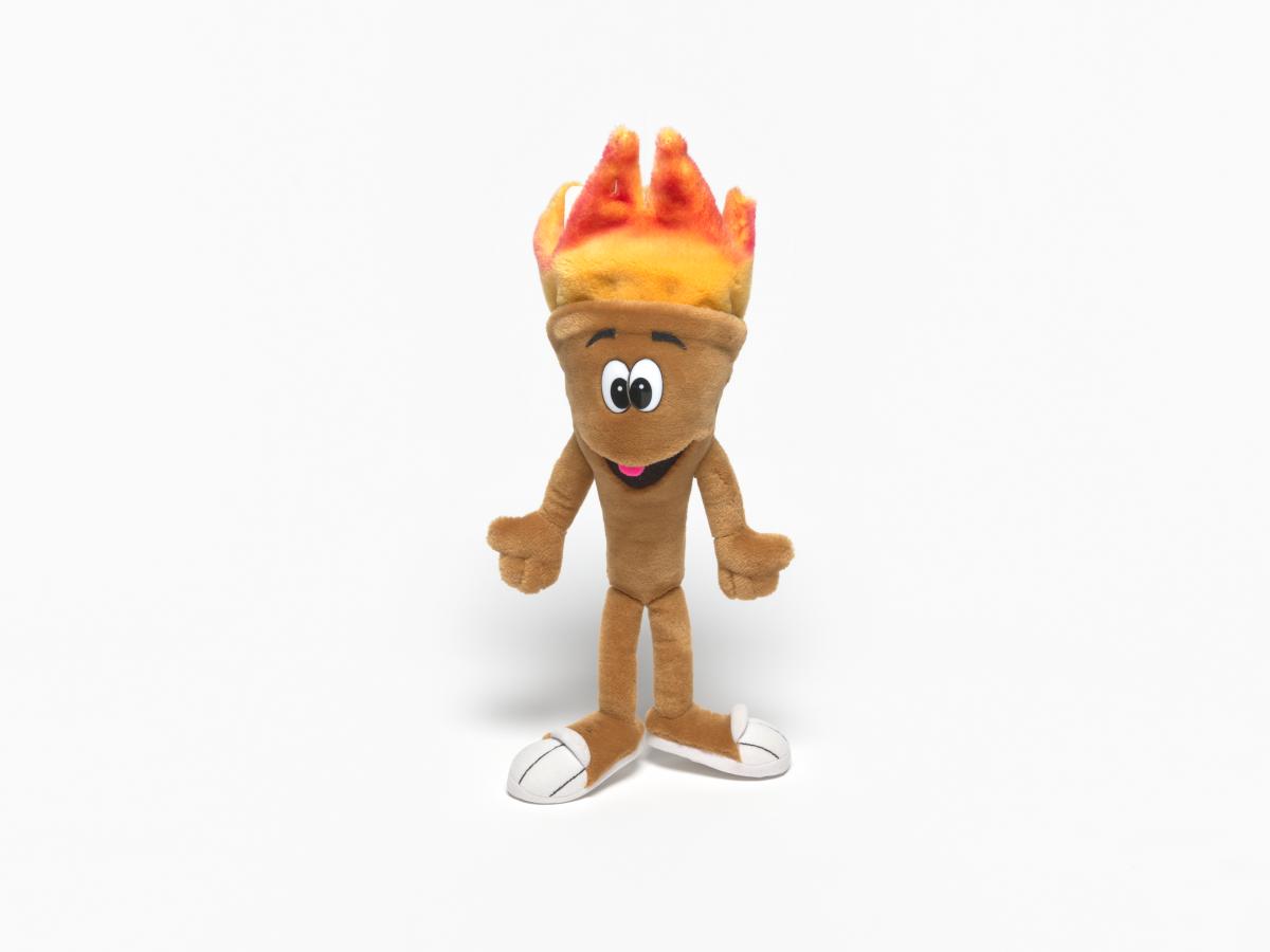 Pyrsos, la mascotte du Musée Olympique en peluche.