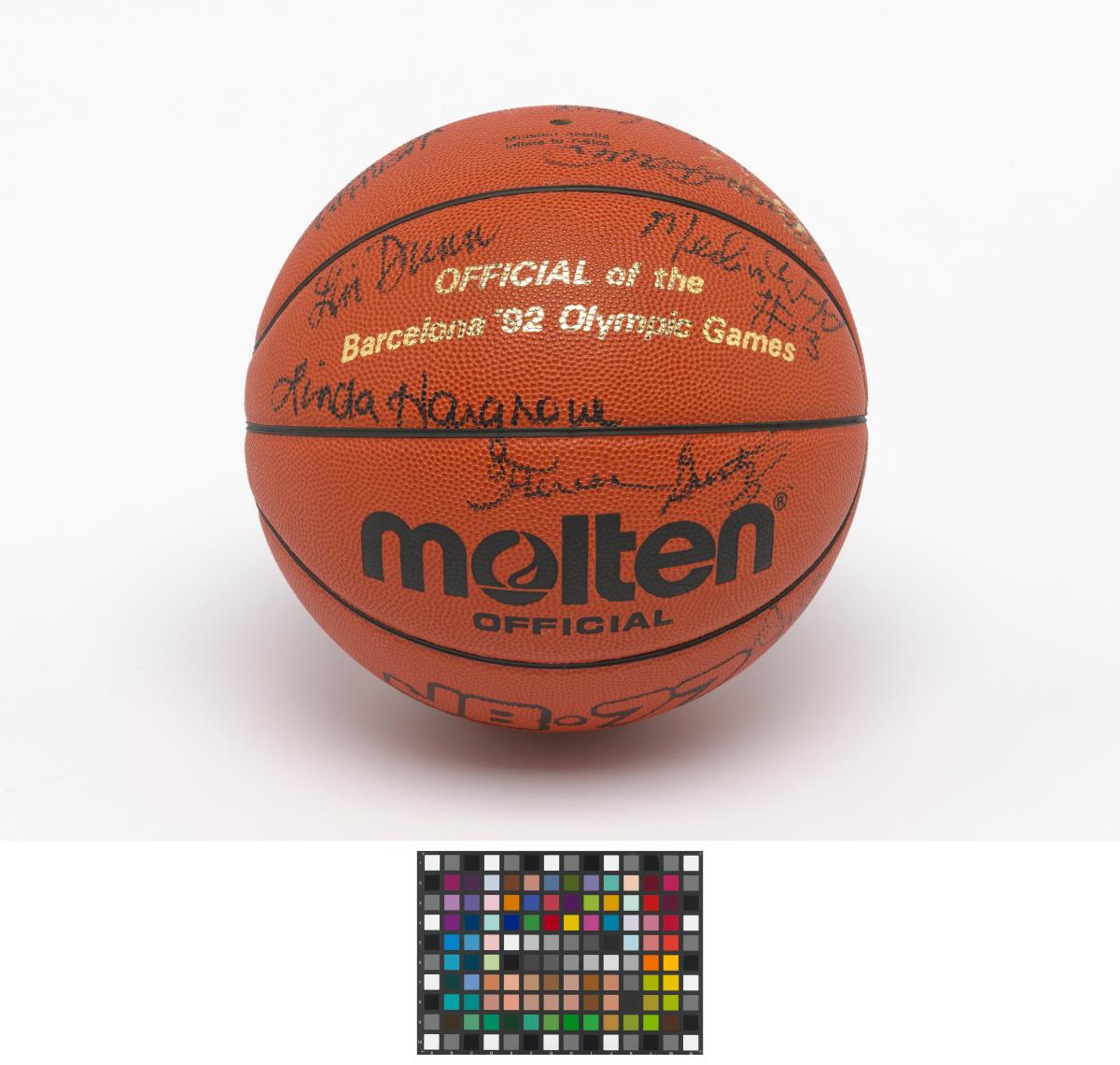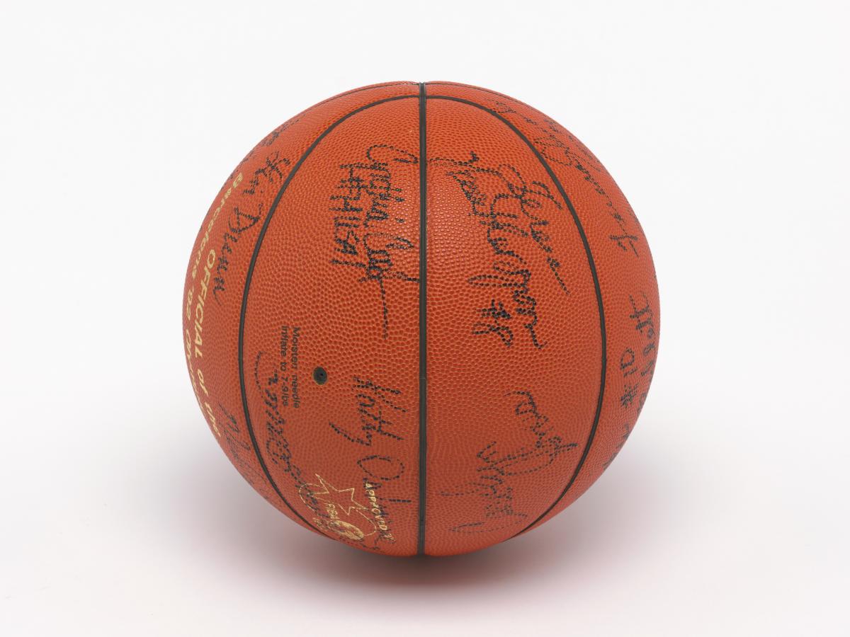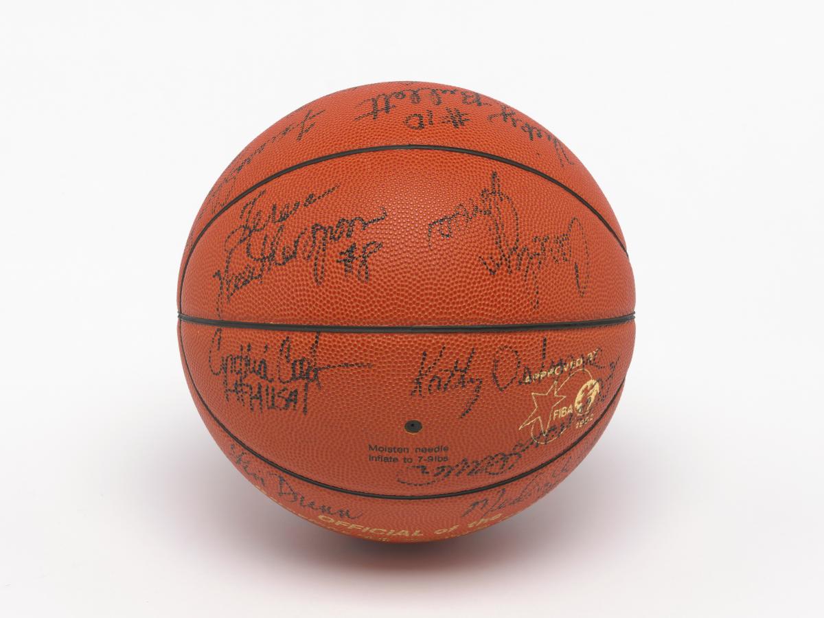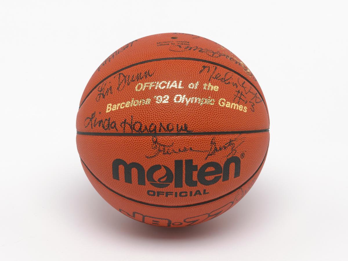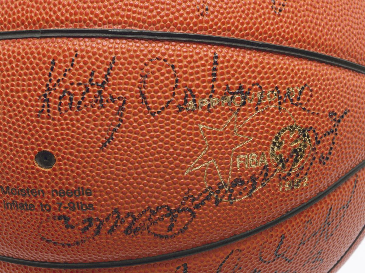 Barcelone 1992, ballon de basketball dédicacé par l'équipe féminine américaine, médaillée de bronze.