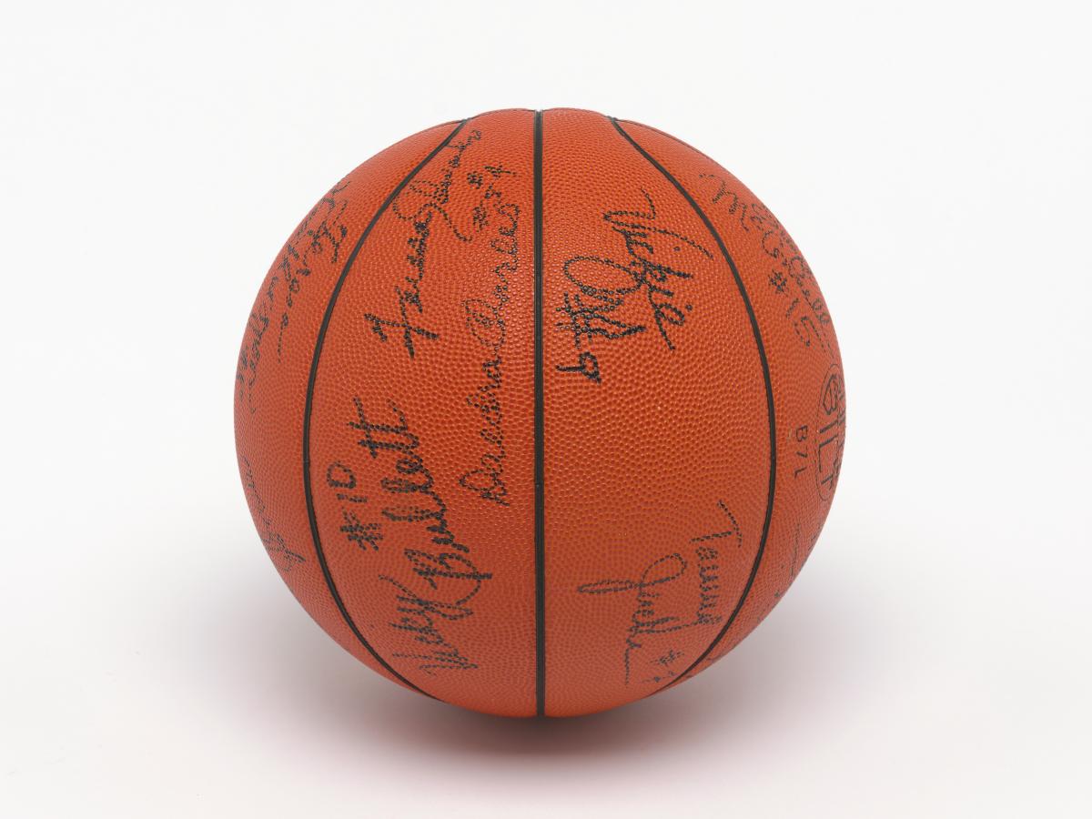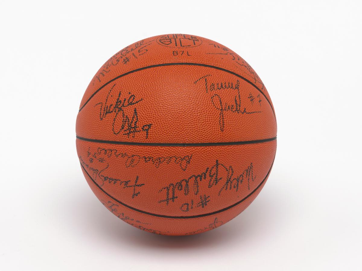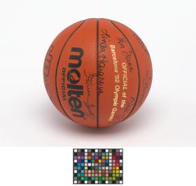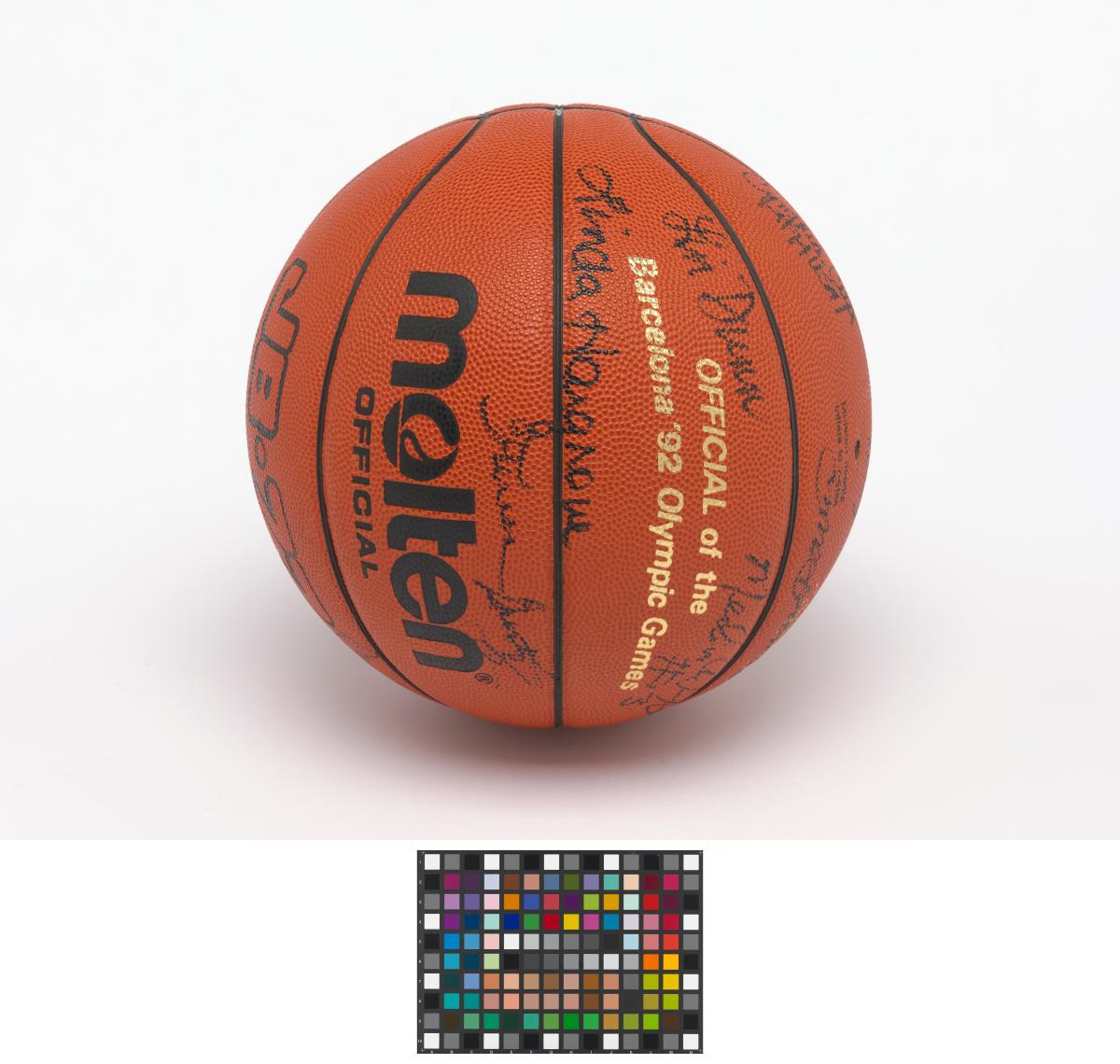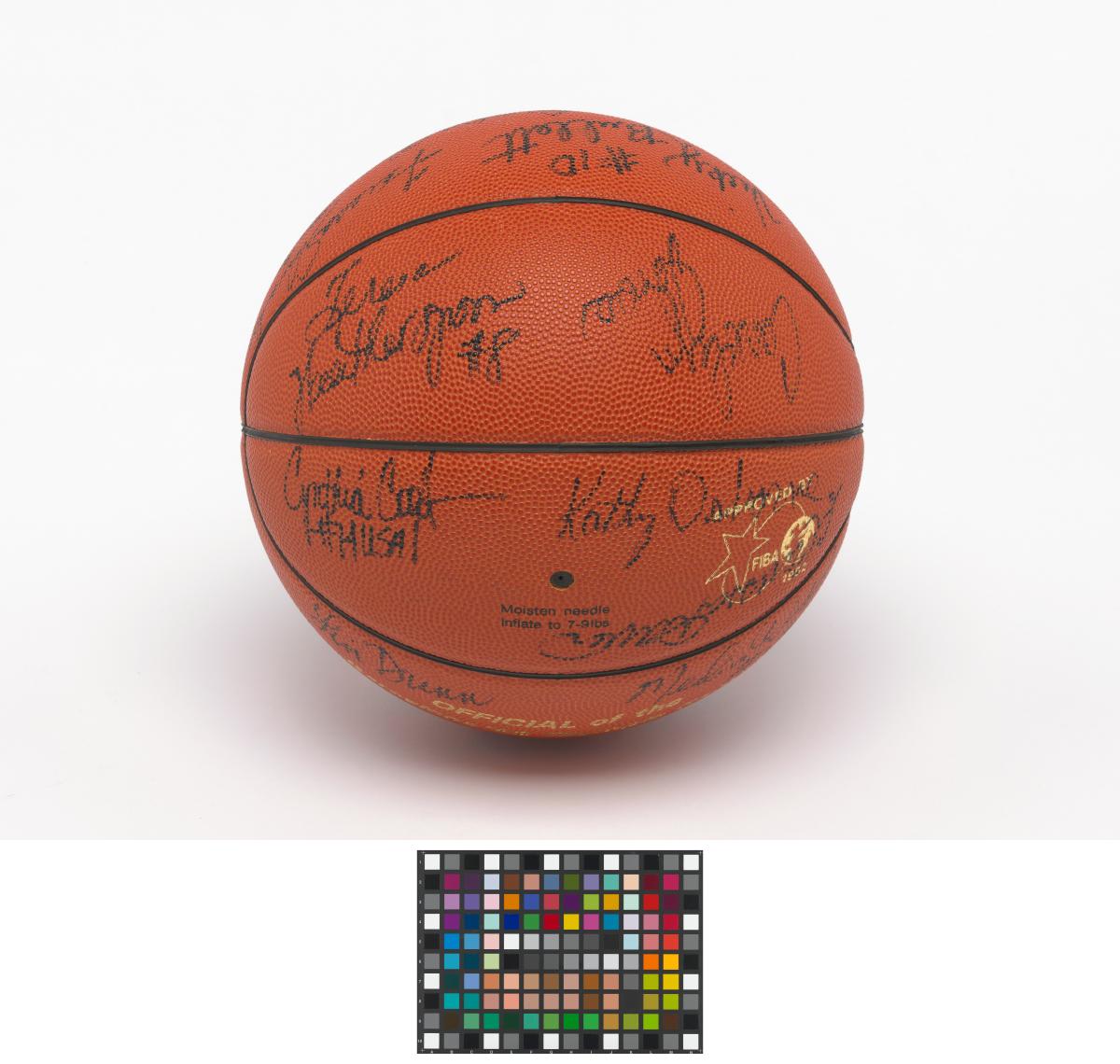 Barcelone 1992, ballon de basketball dédicacé par l'équipe féminine américaine, médaillée de bronze.