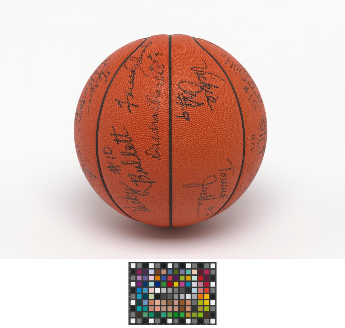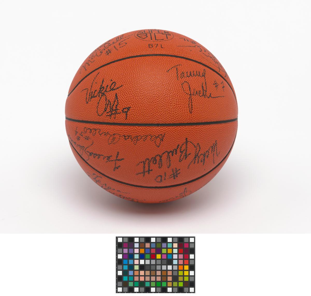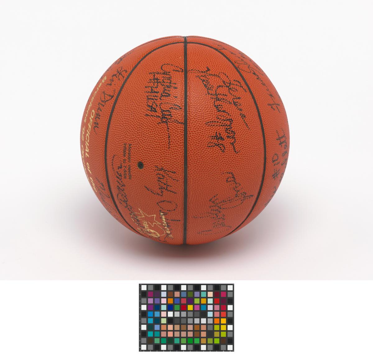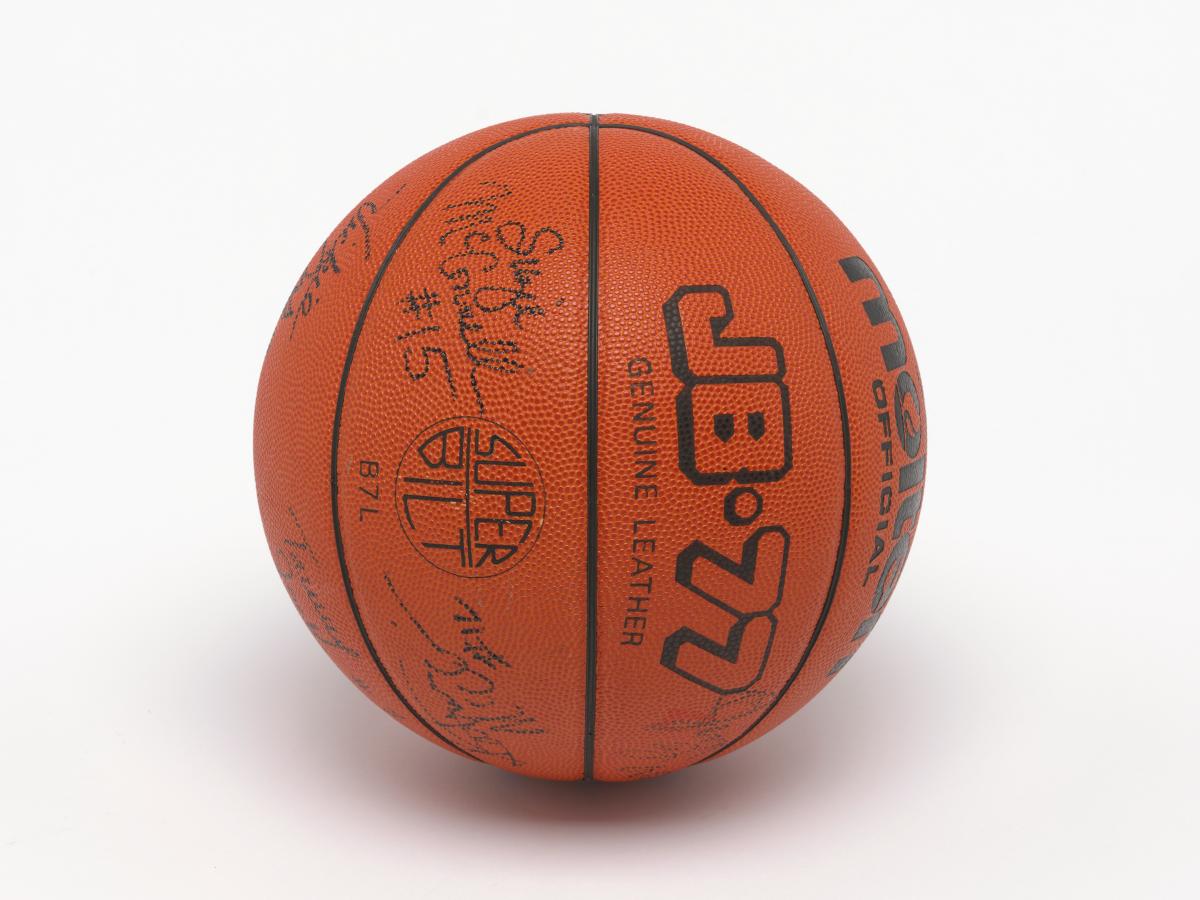 Barcelone 1992, ballon de basketball dédicacé par l'équipe féminine américaine, médaillée de bronze.