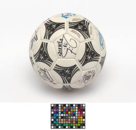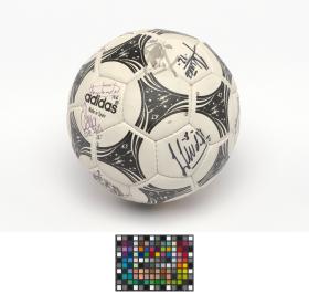 Logo du fabricant, signatures, légende: " Questra champ, Official Ball".