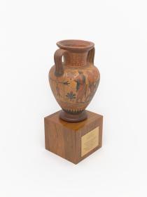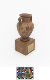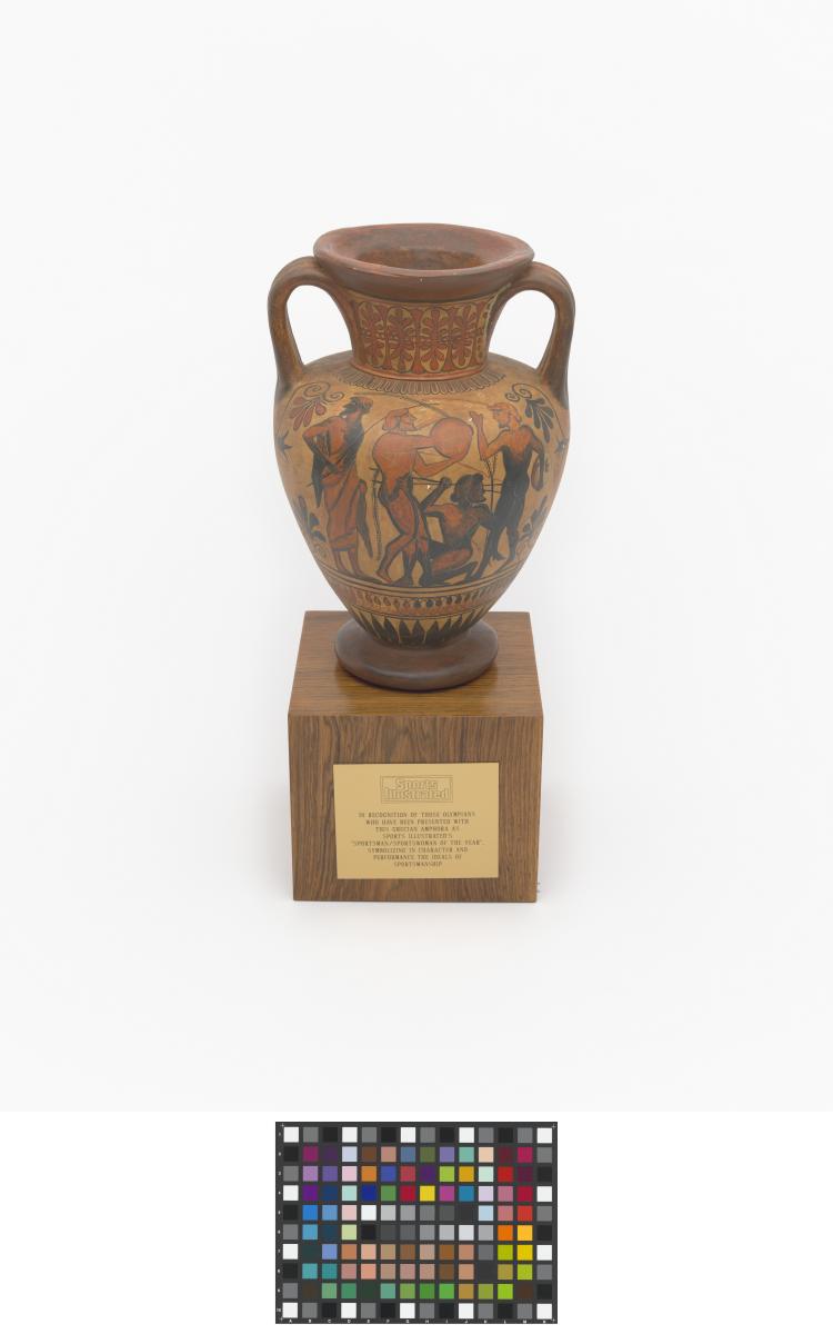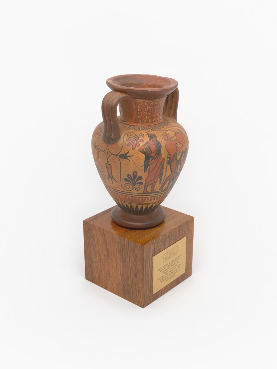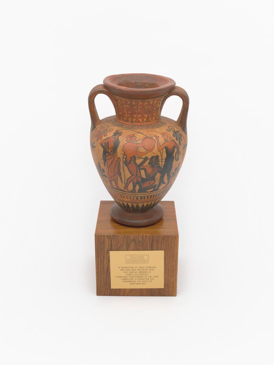 Réplique d'une amphore attique à figure noire représentant des scènes d'athlétisme, 510 avant J.-C, servant de trophée sportif Sport Illustrated.