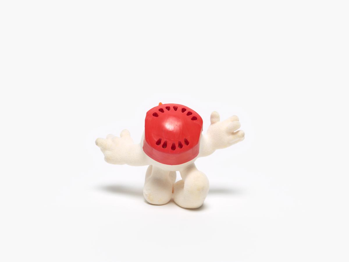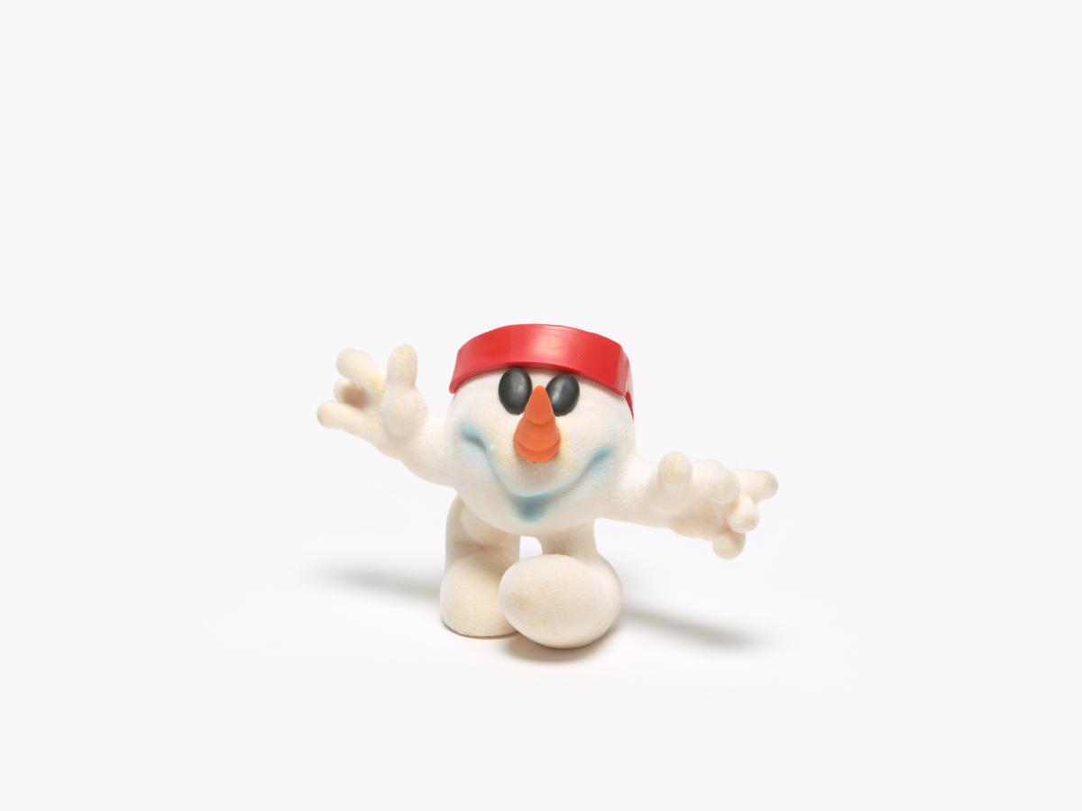 Innsbruck 1976, Schneemandl, le Bonhomme de neige, la mascotte des Jeux jouant au hockey.