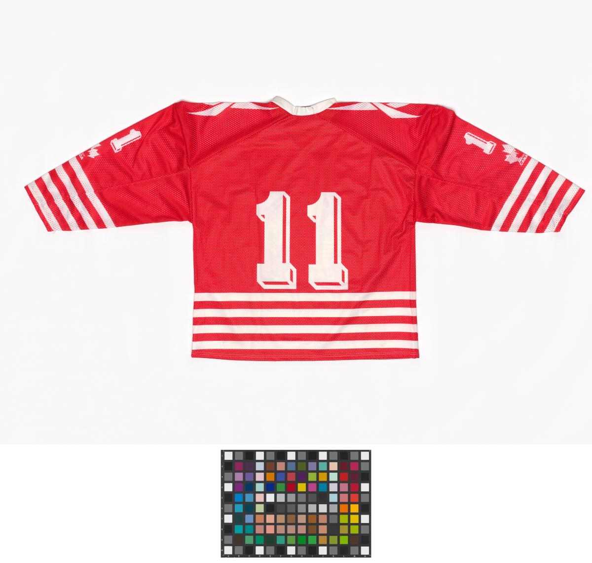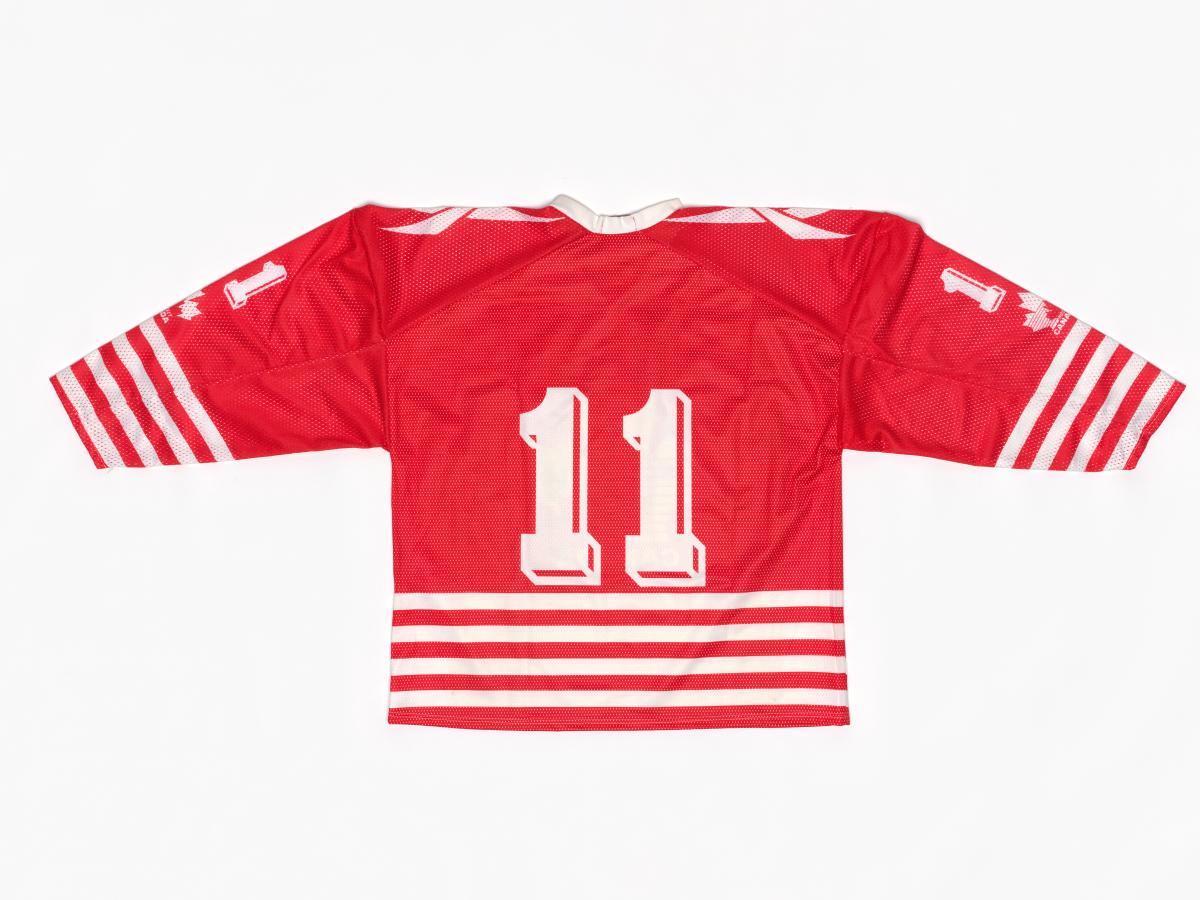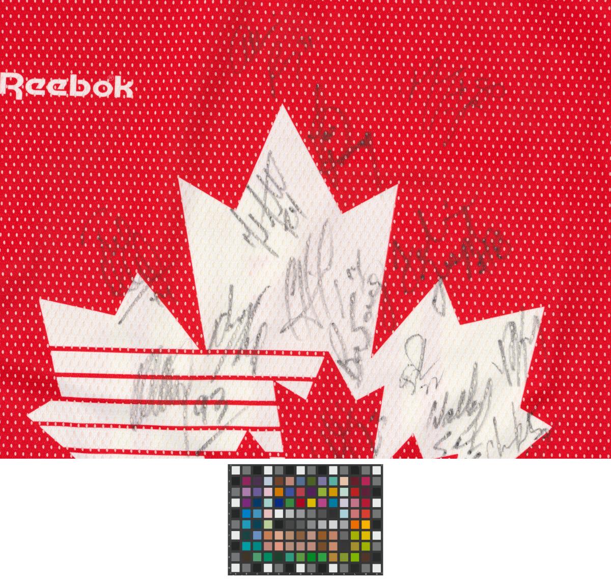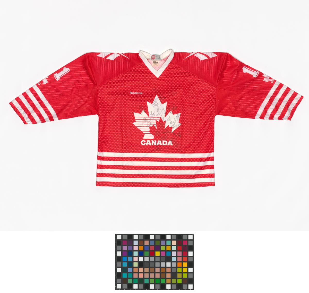 Lillehammer 1994, maillot de hockey de l'équipe canadienne, dédicacé par les joueurs.