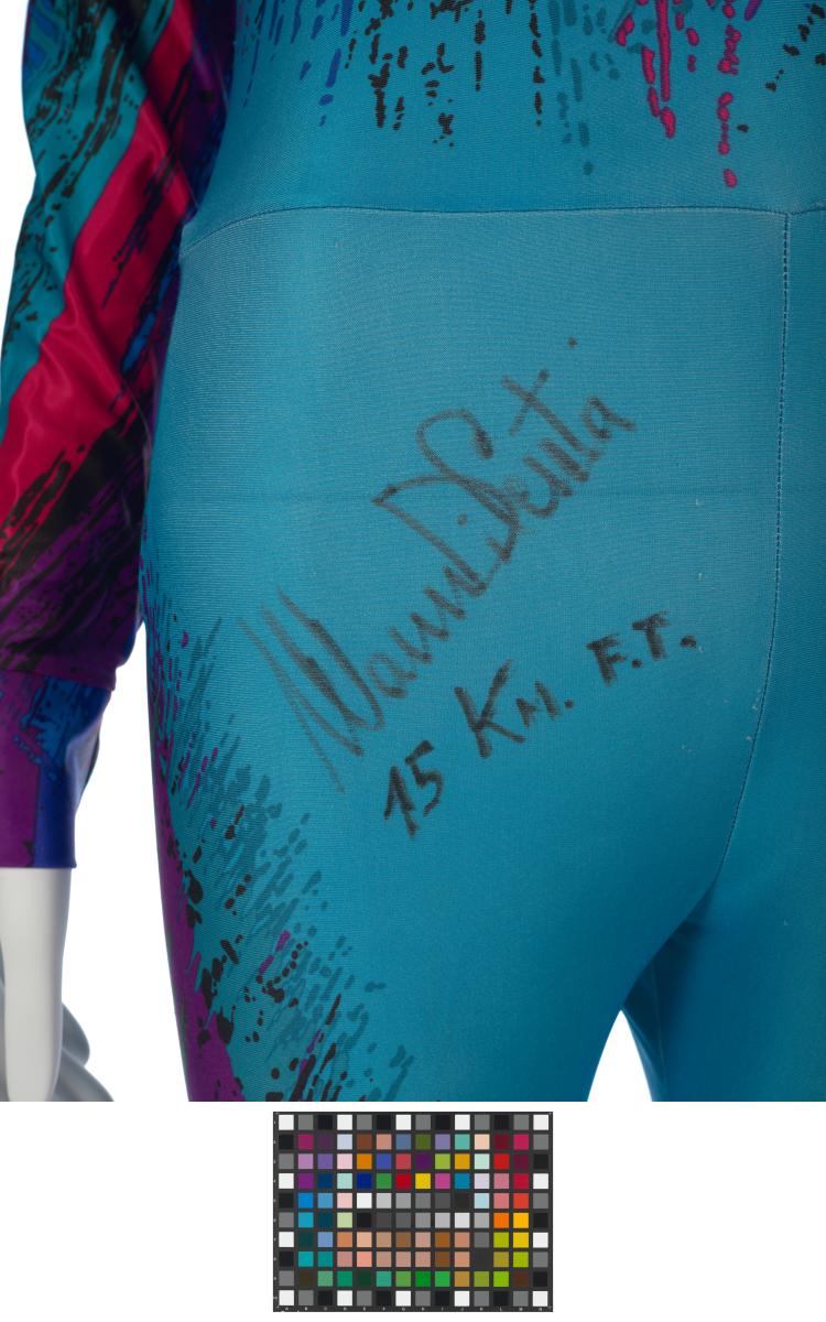 Lillehammer 1994, combinaison de ski nordique portée par Manuela DI CENTA (ITA), dédicacée.