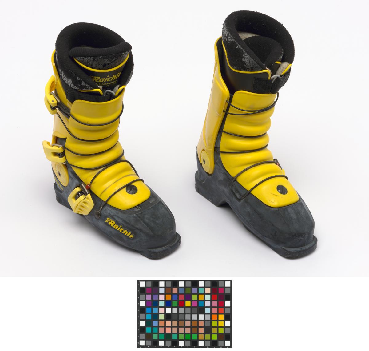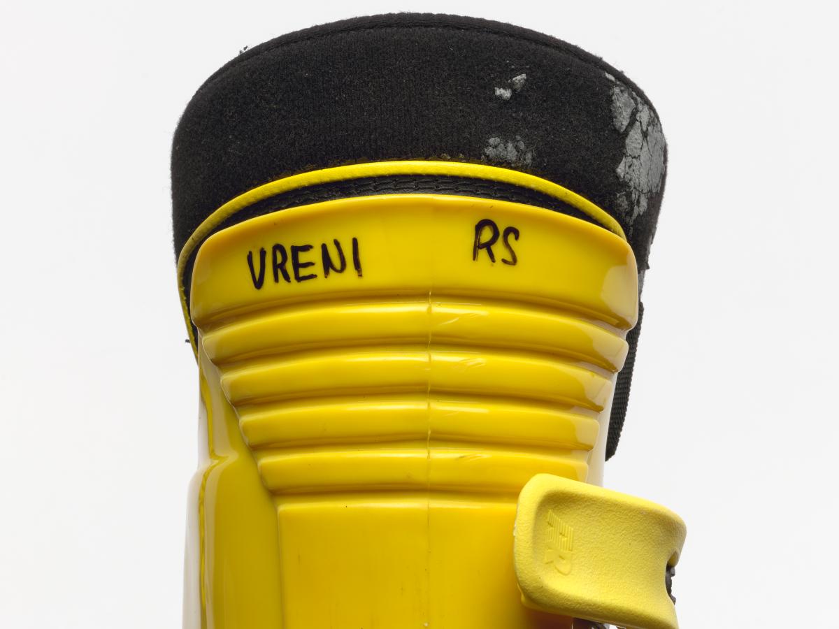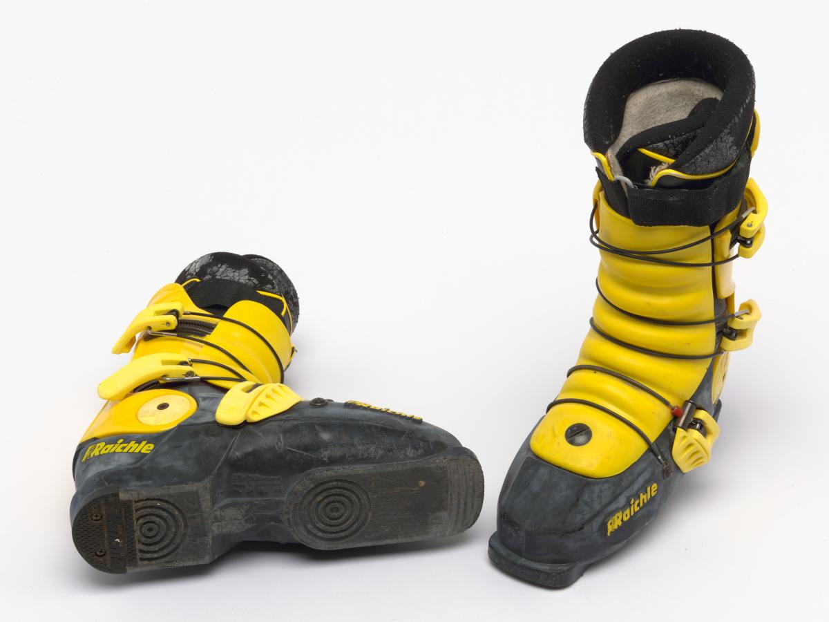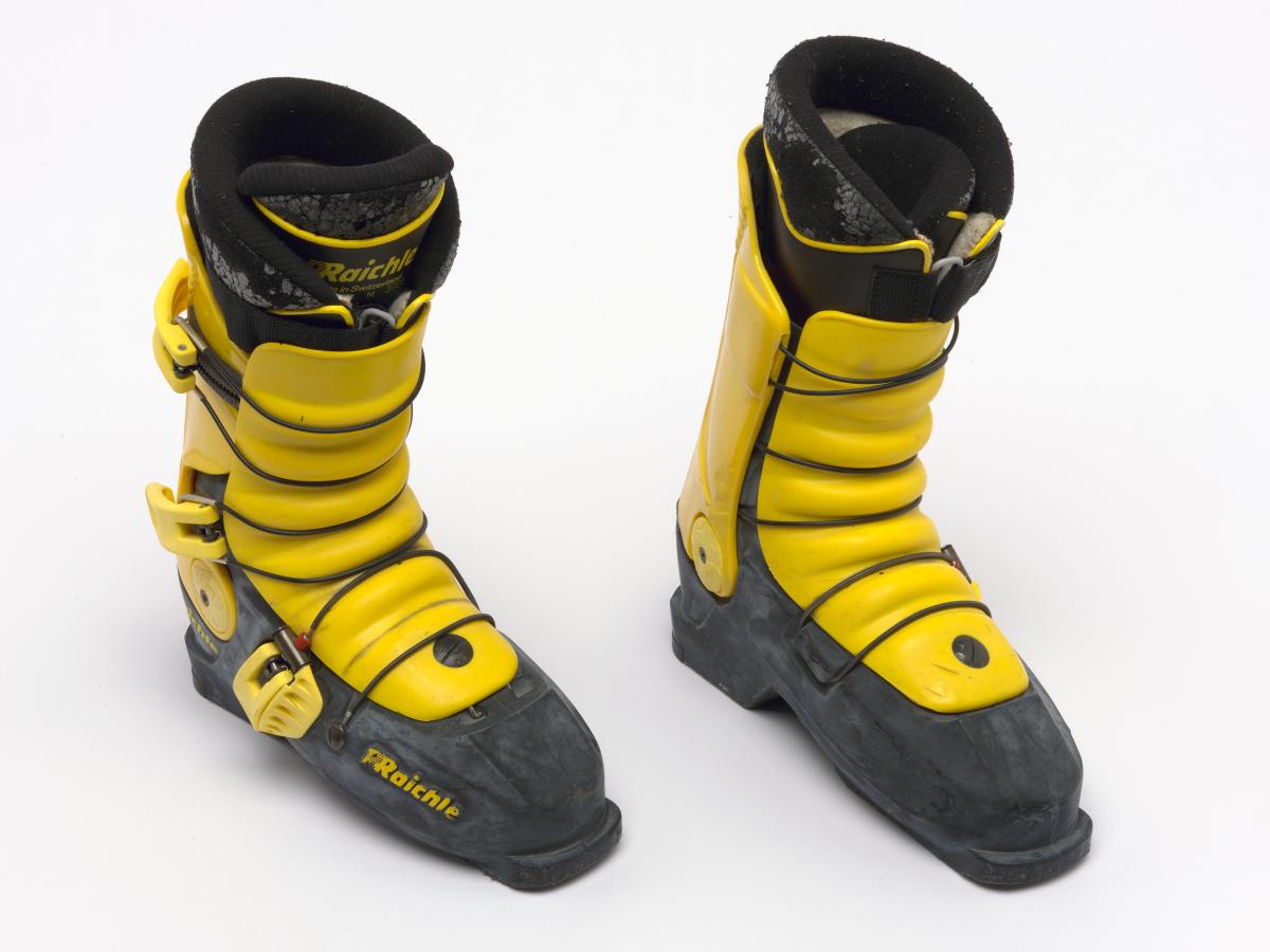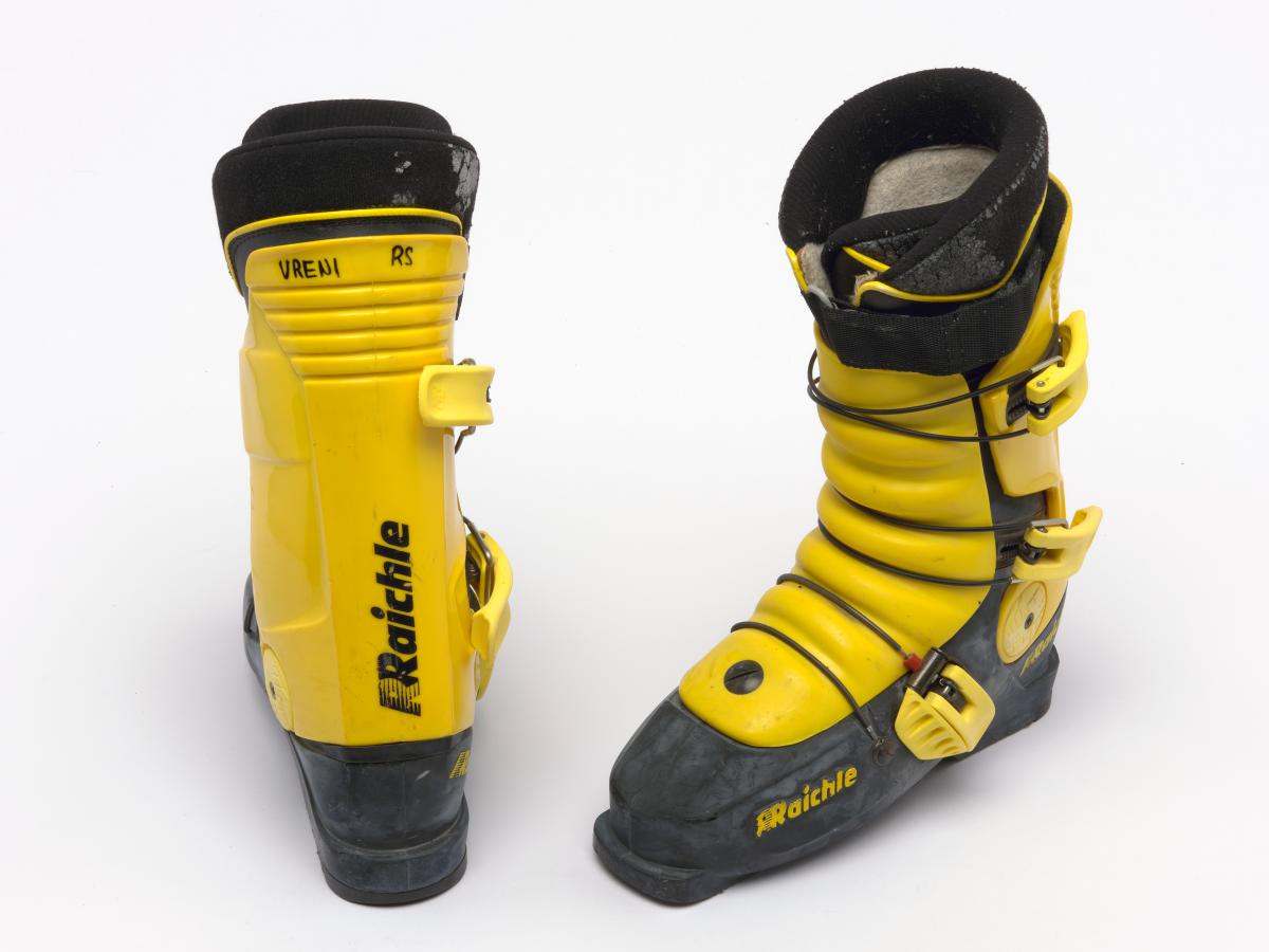 Calgary 1988, paire de chaussures de ski portées par Vreni SCHNEIDER (SUI), double championne olympique de slalom et slalom géant.