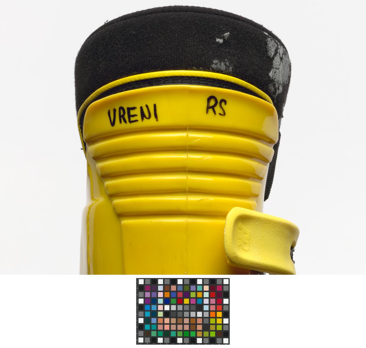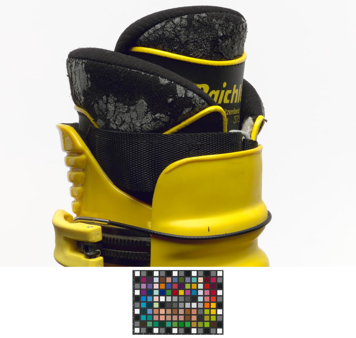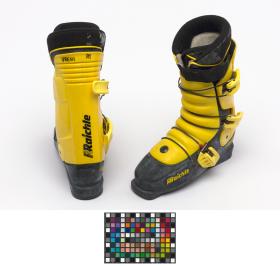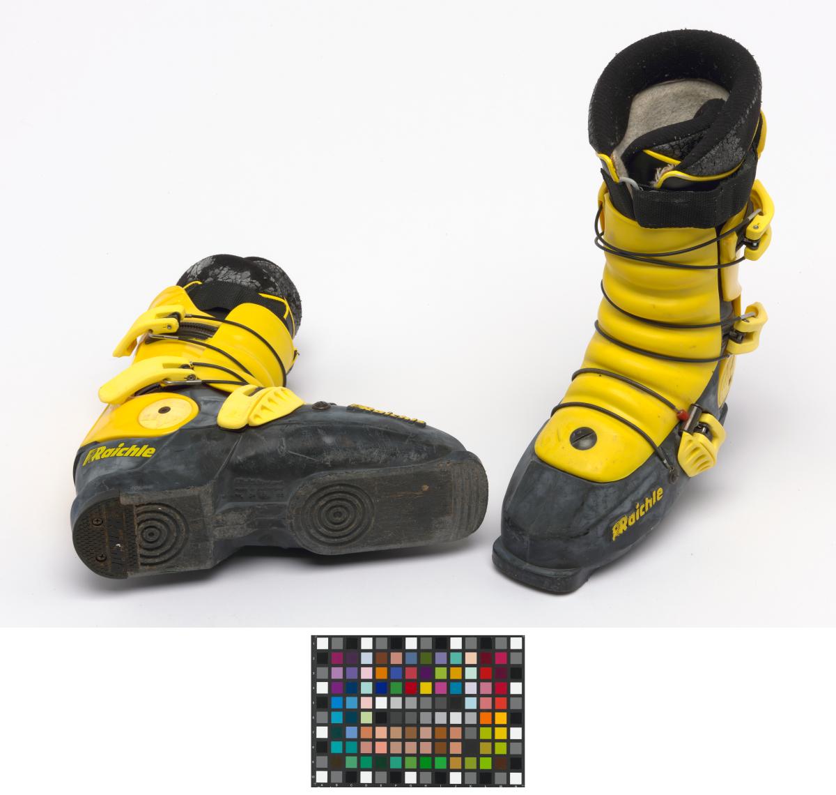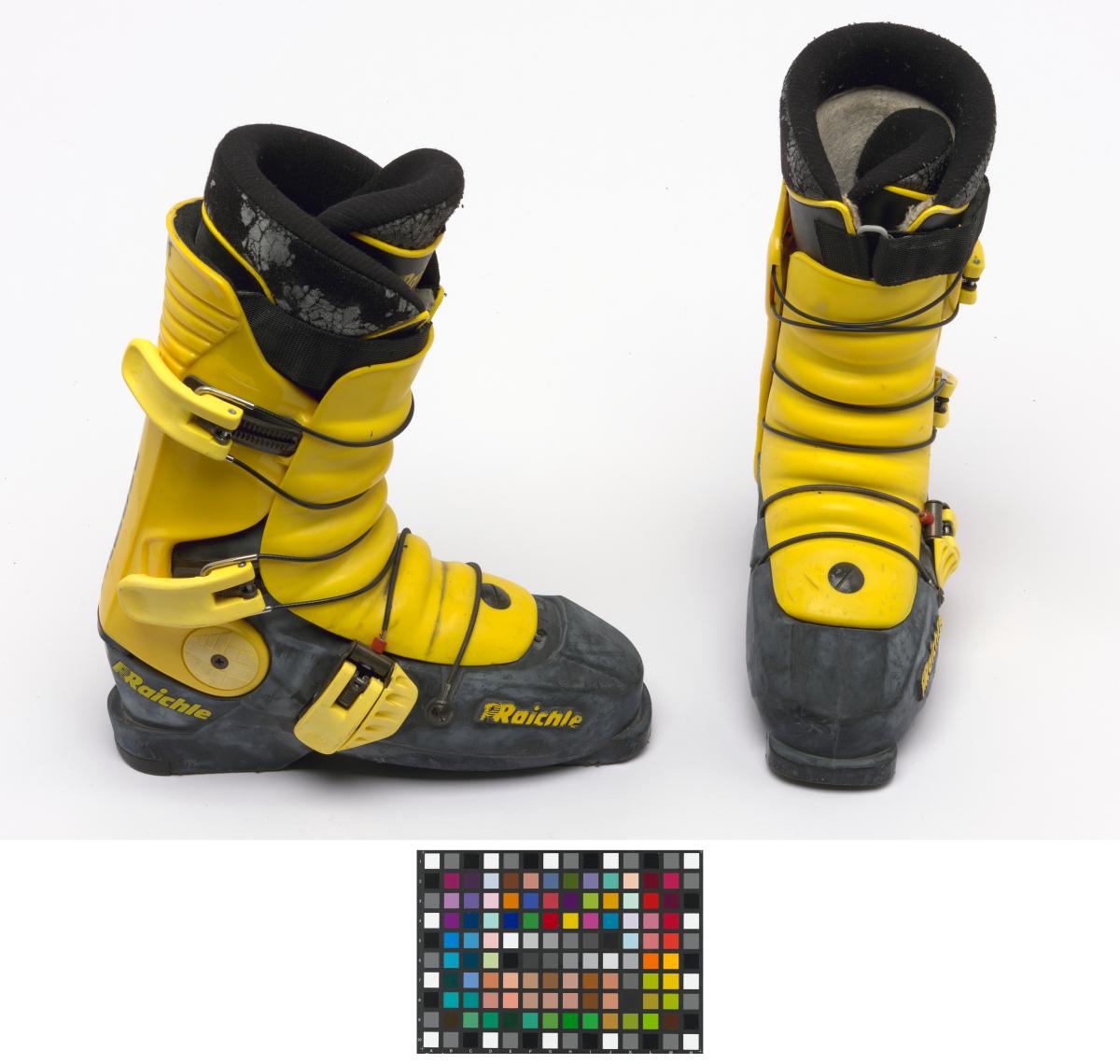 Calgary 1988, paire de chaussures de ski portées par Vreni SCHNEIDER (SUI), double championne olympique de slalom et slalom géant.