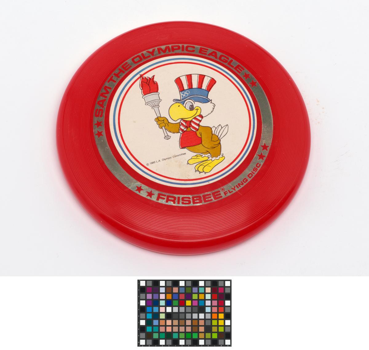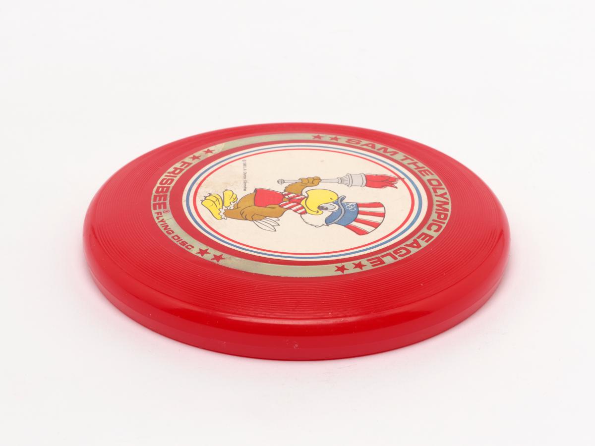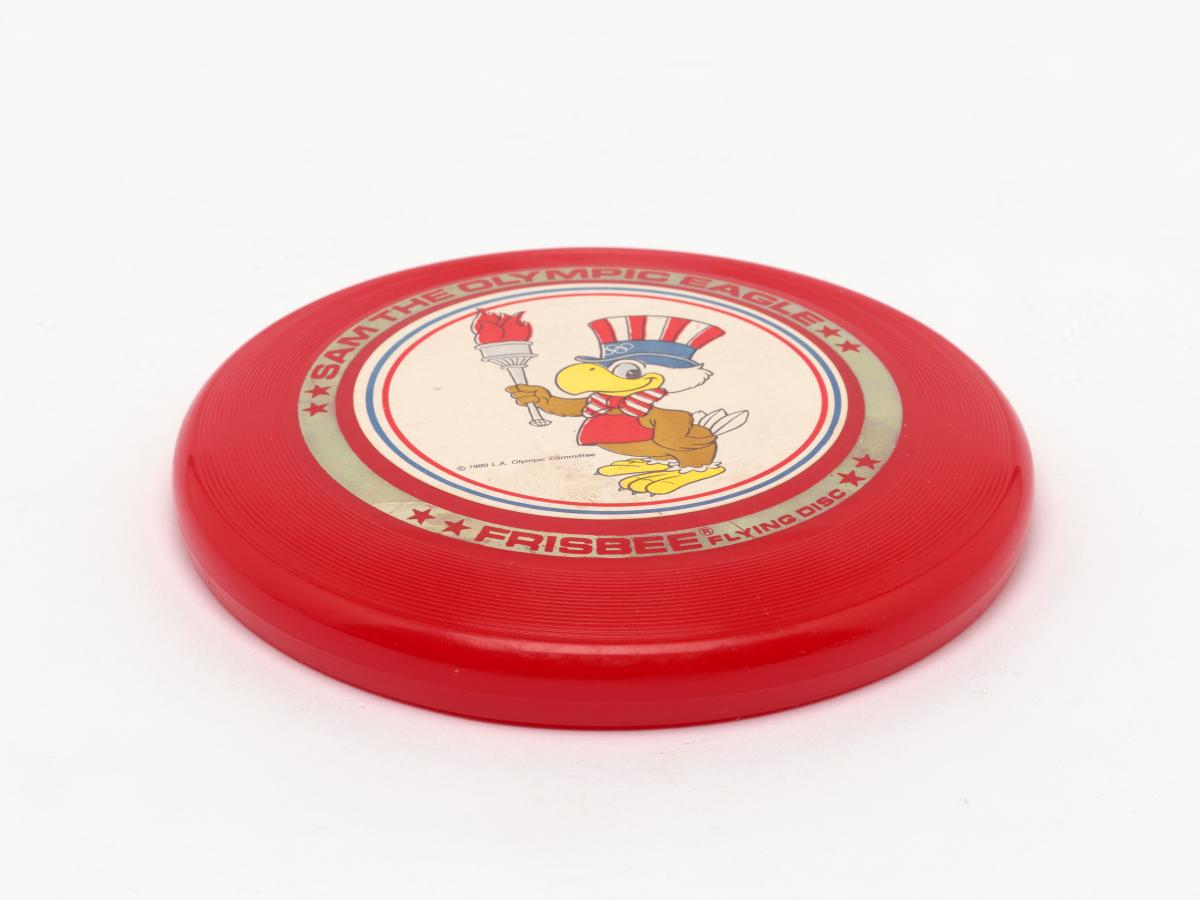 Légende: "Sam the Olympic eagle", "frisbee (flying disc)".