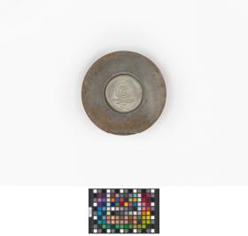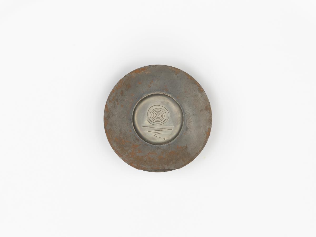 Revers de la médaille commémorative officielle en relief: spirale et ligne en zig zag (soleil sur un horizon?).