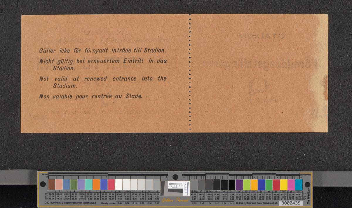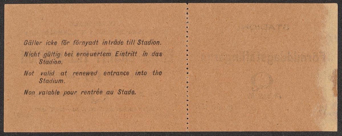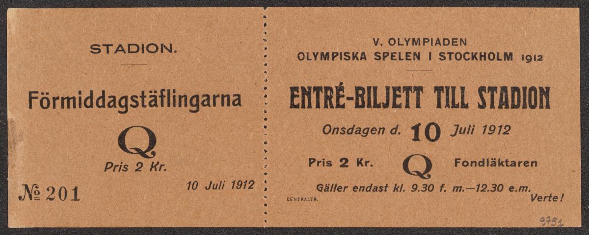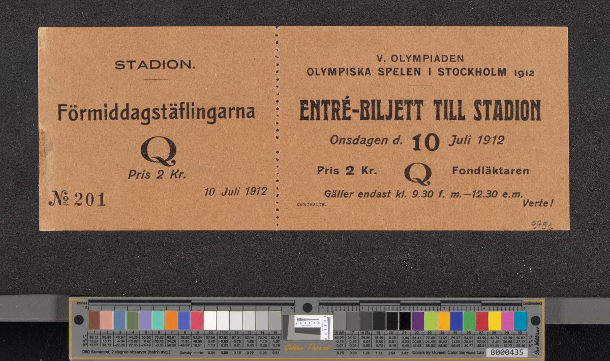 Stockholm 1912, billet d'entrée au stade pour le 10 juillet pour les épreuves du matin.