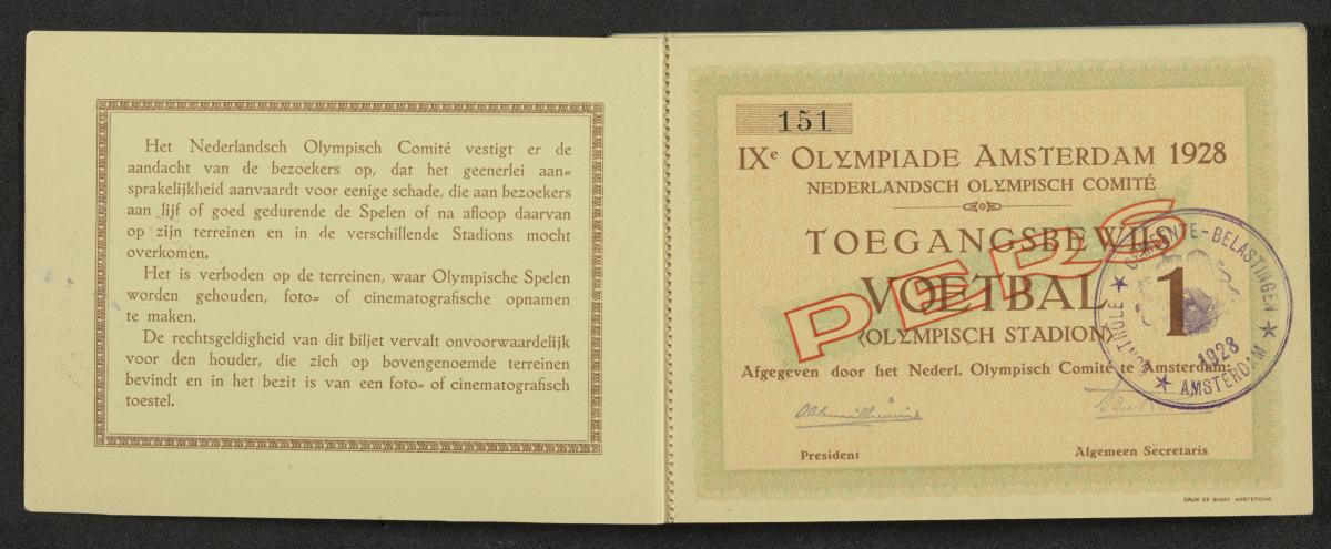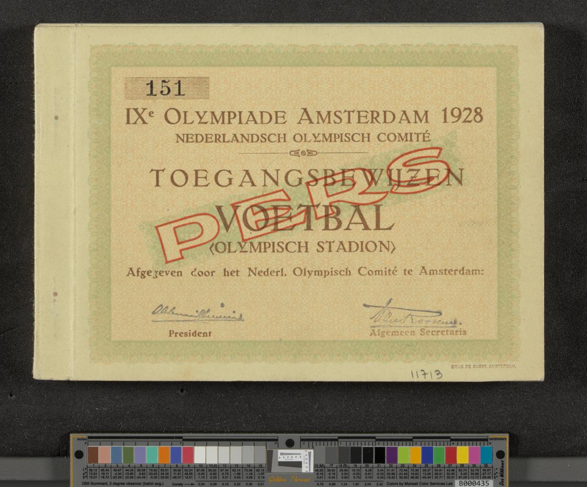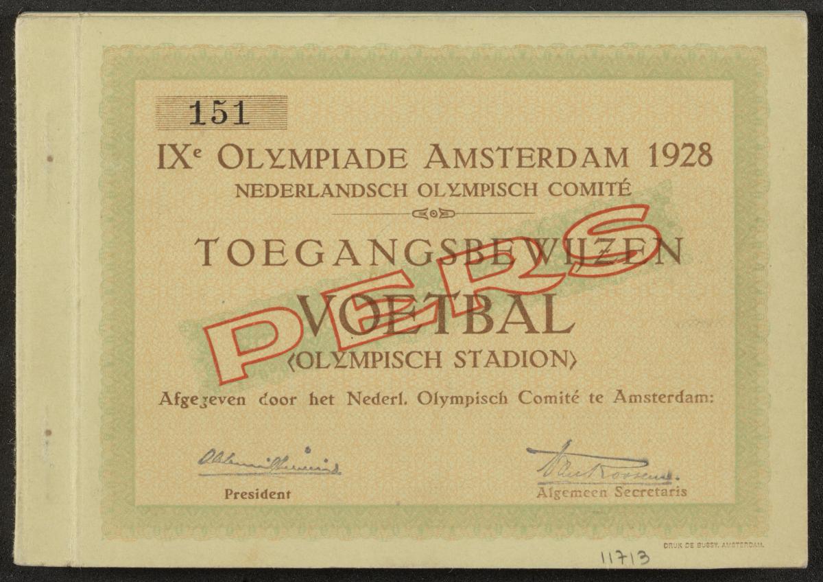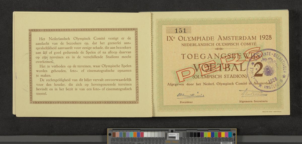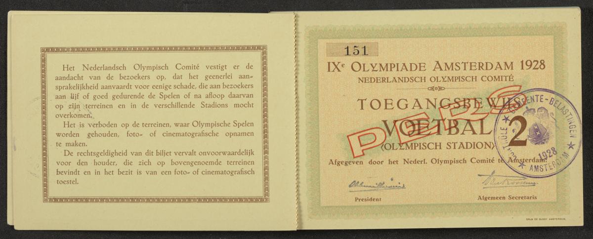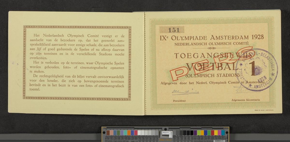 Amsterdam 1928, carnet de billets d'entrée pour le football.