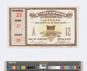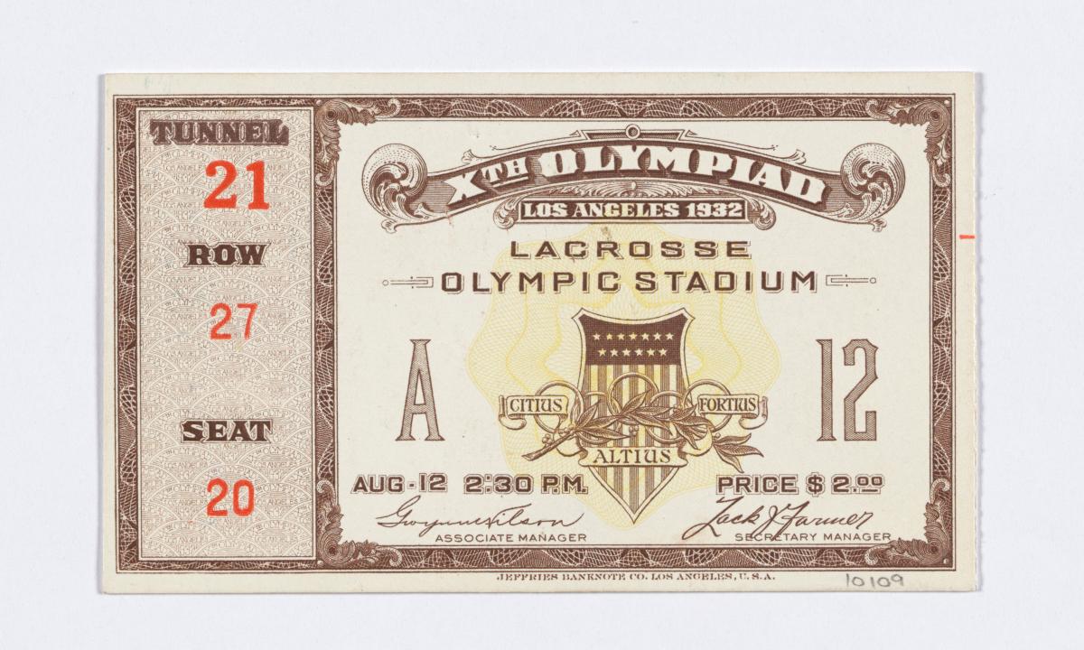 Los Angeles 1932, billet d'entrée au stade olympique pour le match de lacrosse le 12 août.