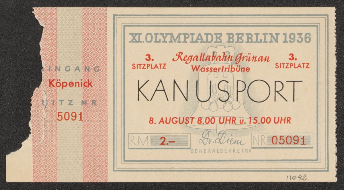 Berlin 1936, billet d'entrée du 8 août pour les épreuves de canoë.