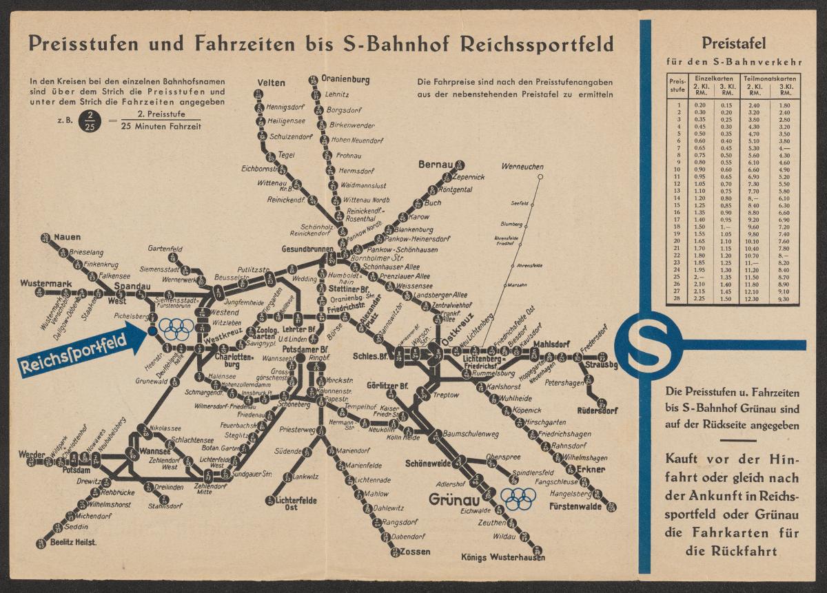 Berlin 1936, plan du réseau du métro.