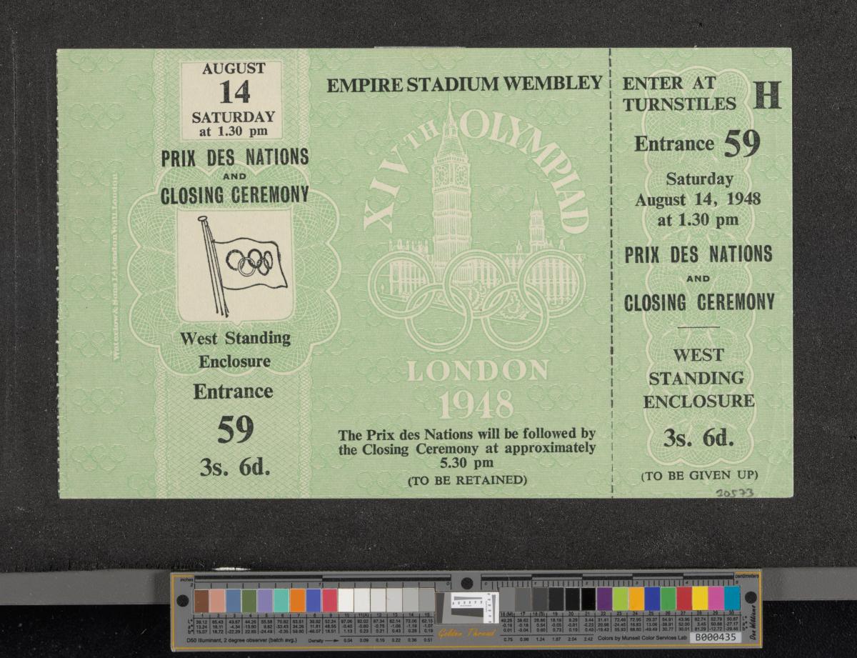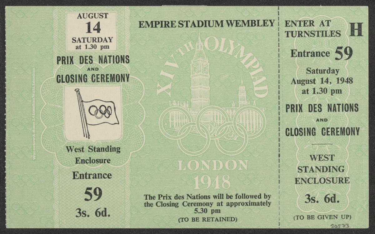 Londres 1948, billet d'entrée pour la cérémonie de clôture.