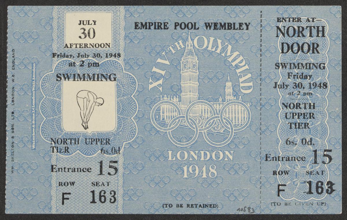 Londres 1948, billet d'entrée du 30 juillet pour la natation.