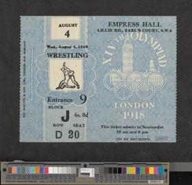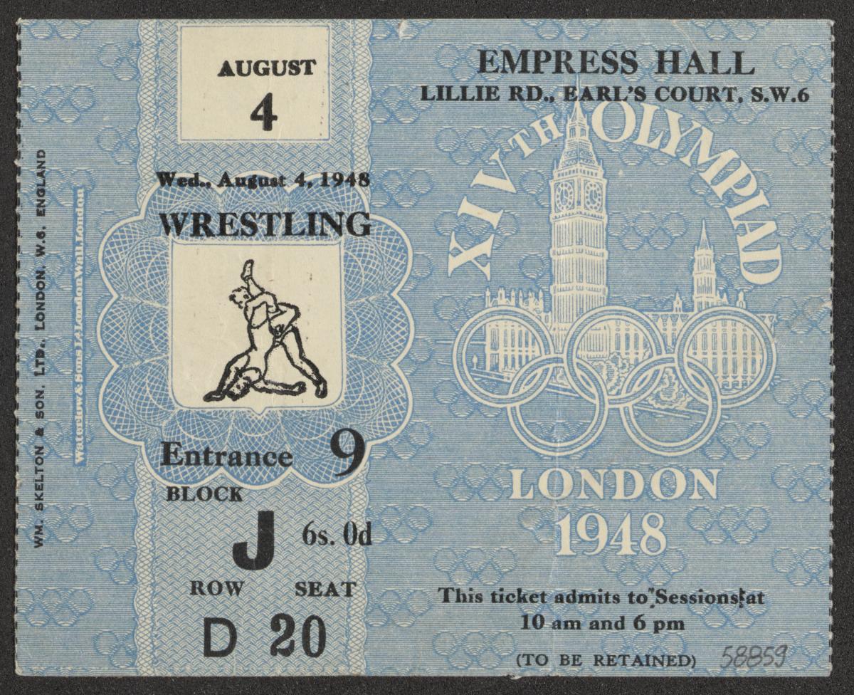 Londres 1948, billet d'entrée du 4 août pour la lutte.