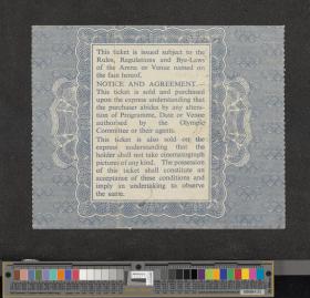 BIllet avec l'emblème des Jeux et le pictogramme de la lutte, réglement au dos. Talon détaché.