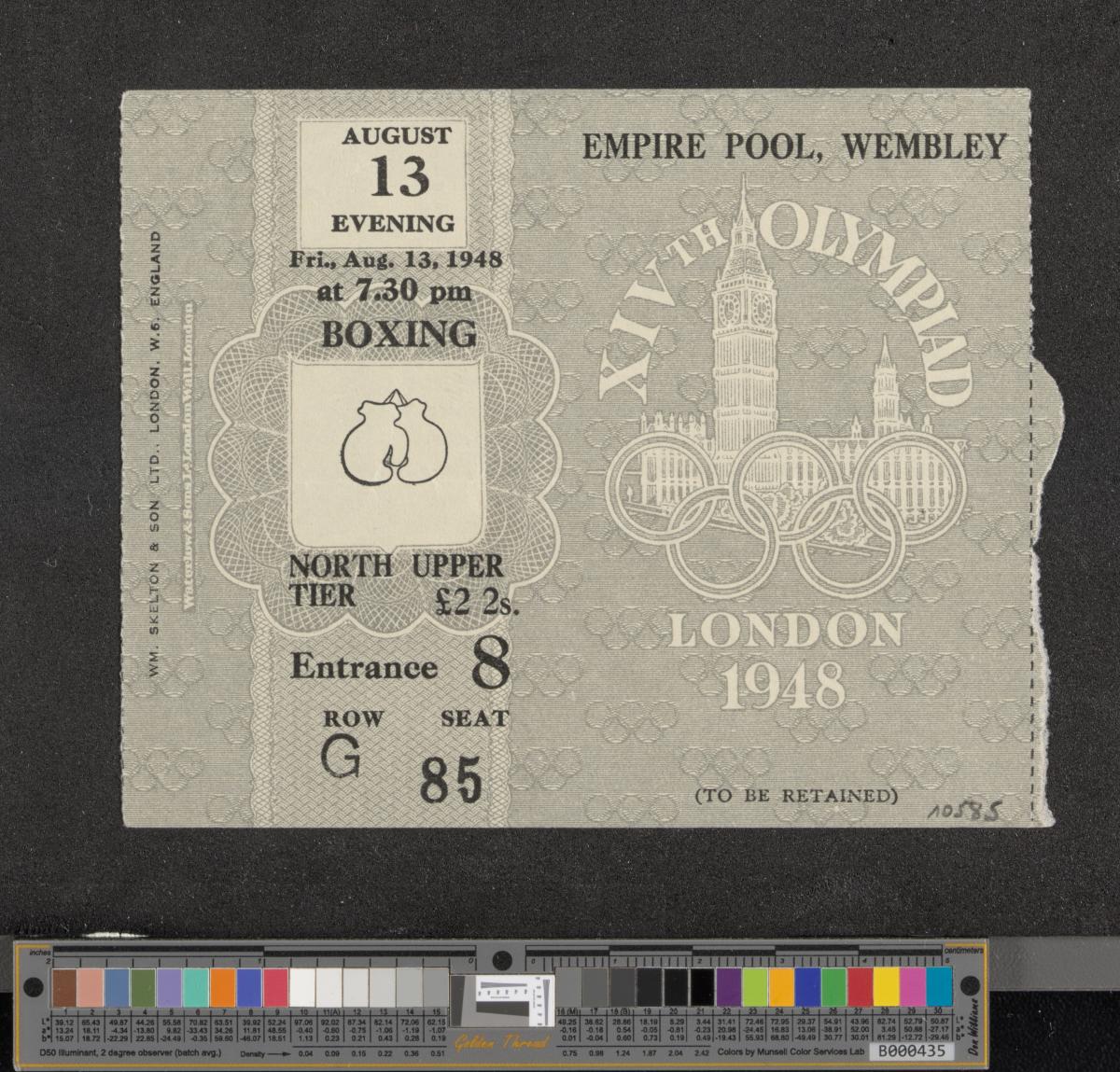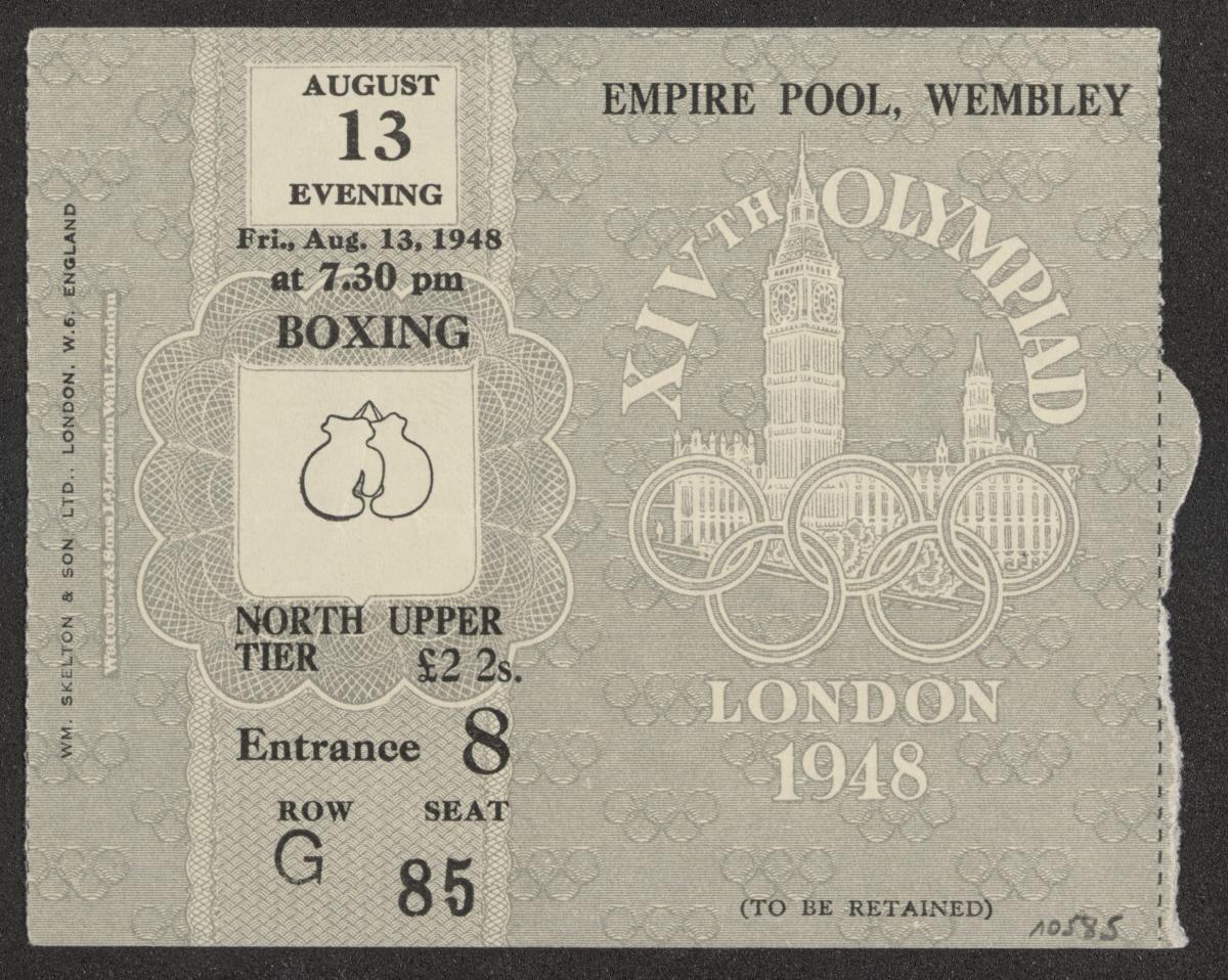Londres 1948, billet d'entrée du 13 août pour la boxe.