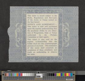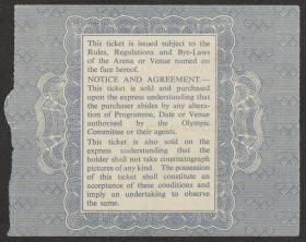BIllet avec l'emblème des Jeux et le pictogramme de la boxe, réglement au dos. Talon détaché.
