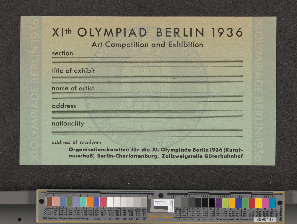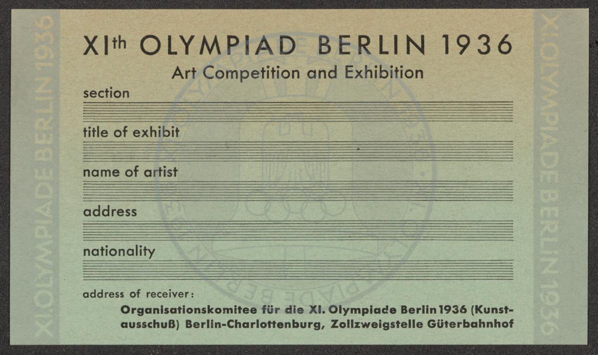 Berlin 1936, étiquette pour les envois des oeuvres au concours et exposition d'art.