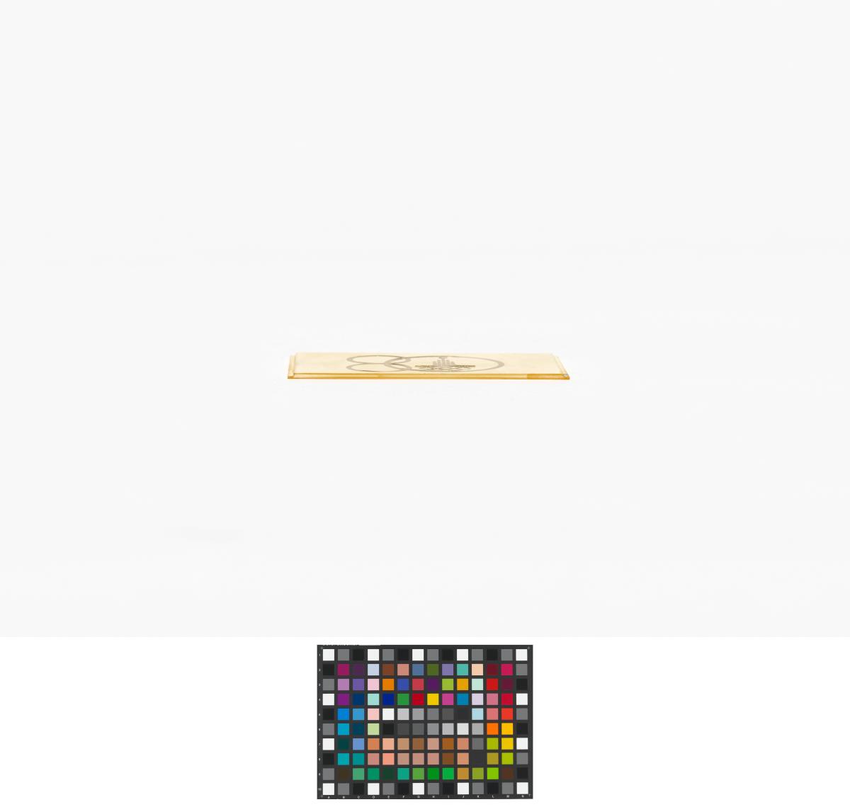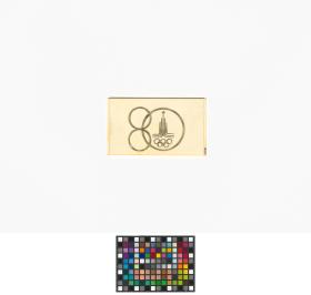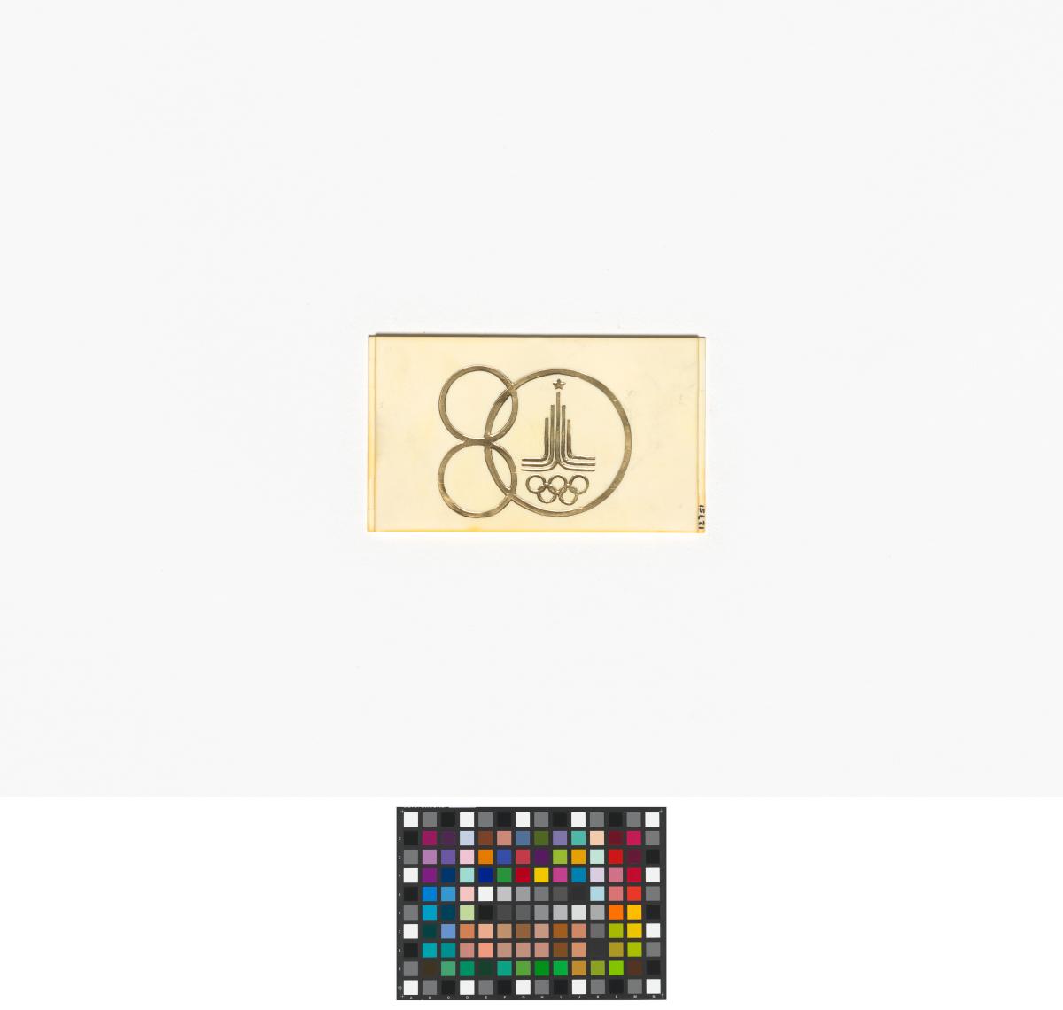 Moscou 1980, plaquette en plastique avec l'emblème des Jeux et le chiffre "80".