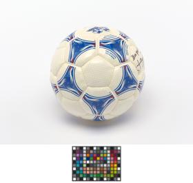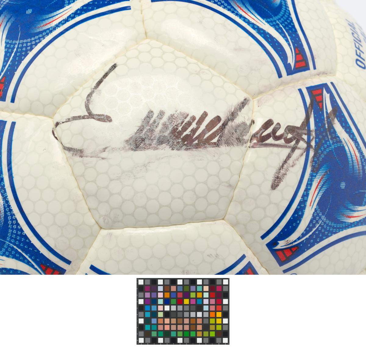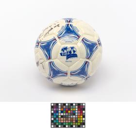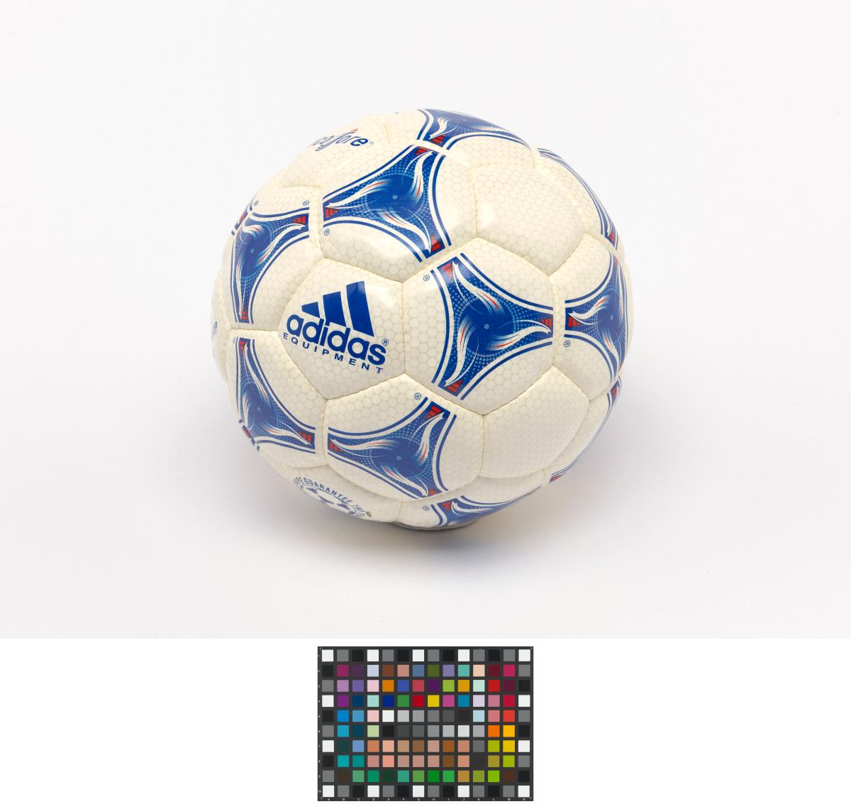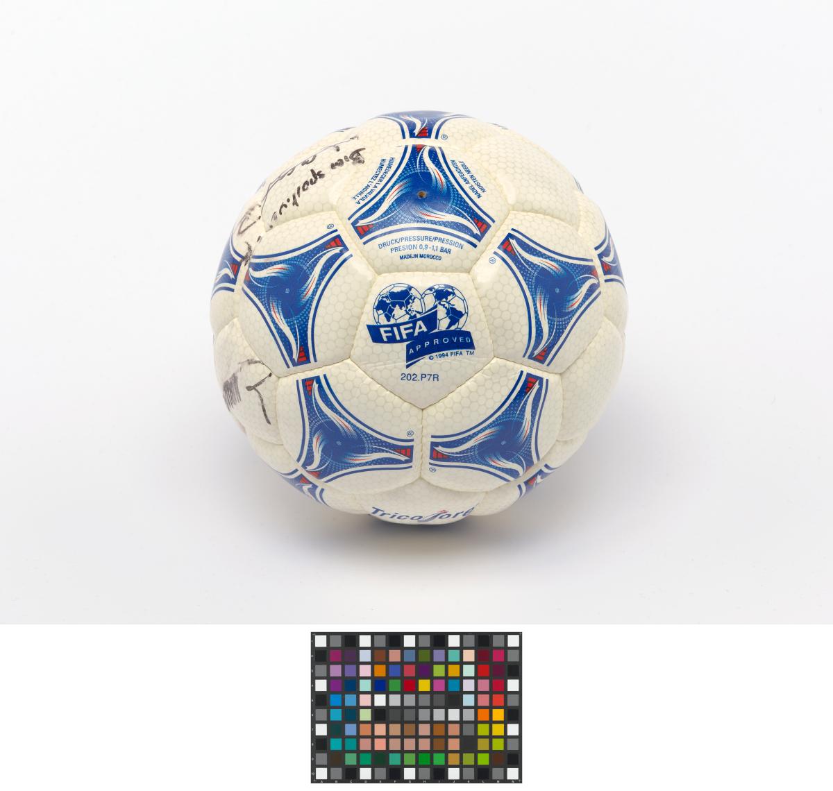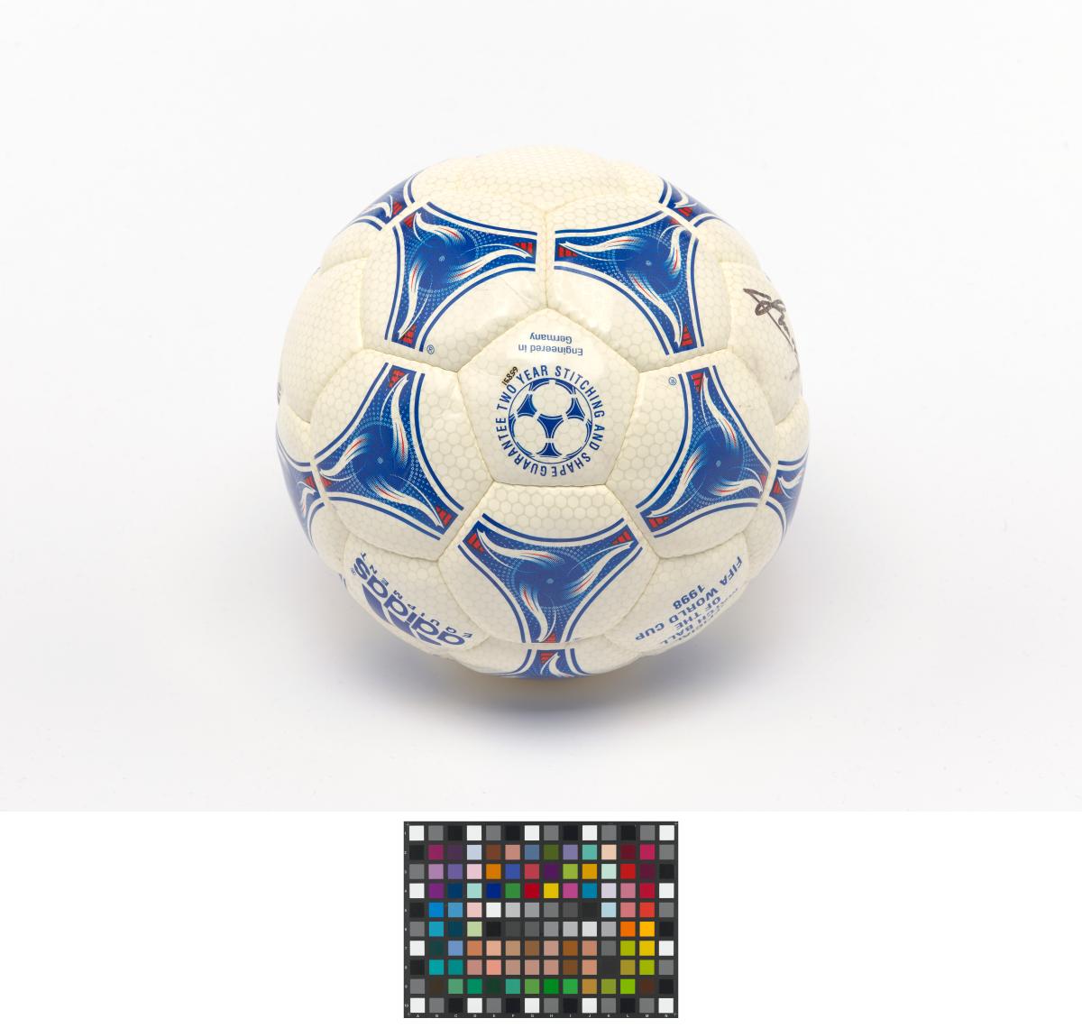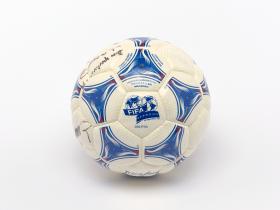 Modèle Tricolore, signé par Aimé Jacquet, entraîneur de l'équipe française de football pour la Coupe du Monde 1998 en France, Juan Antonio Samaranch, président du CIO, et Claude Simonet, président de la Fédération Française de Football. Modèle approuvé par la FIFA.
