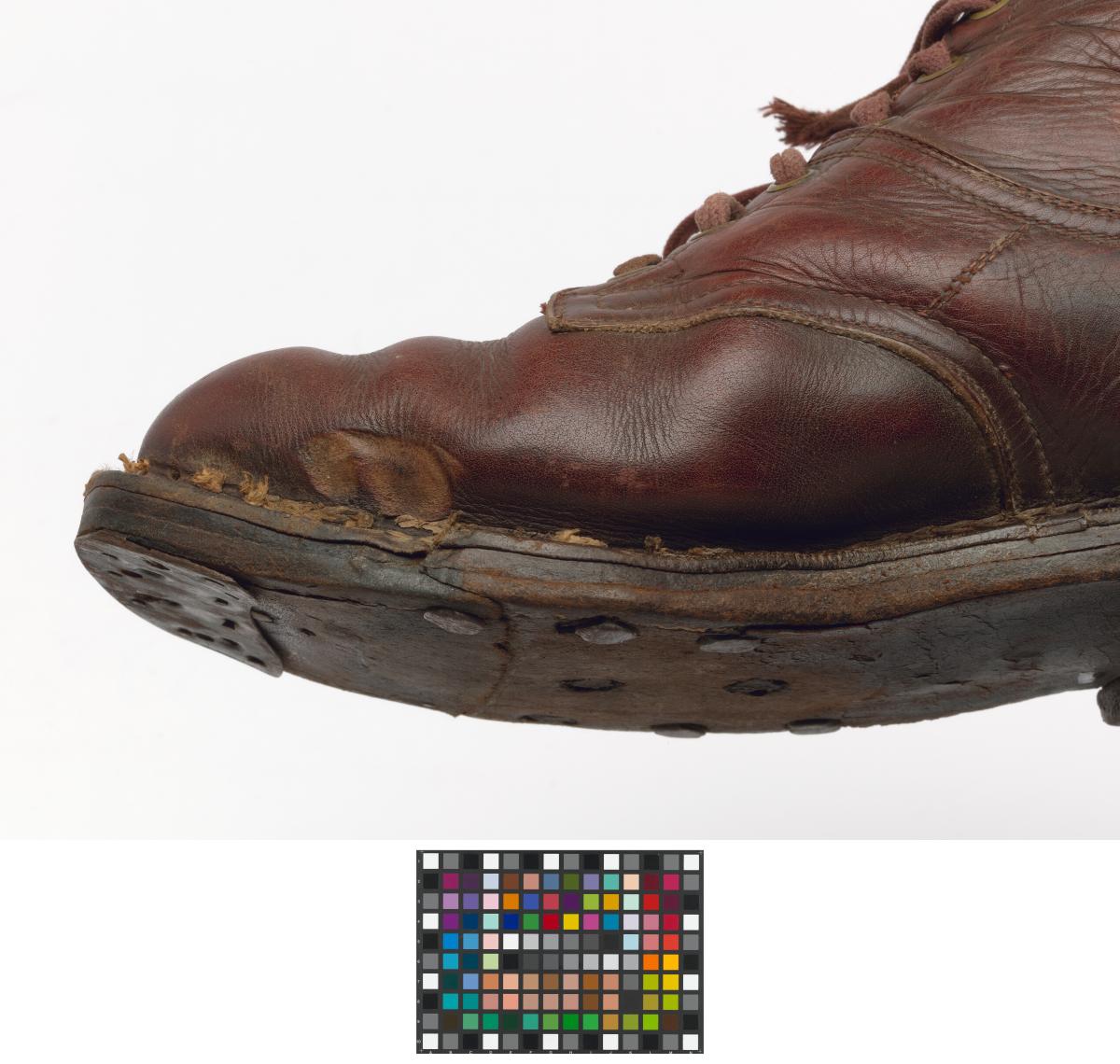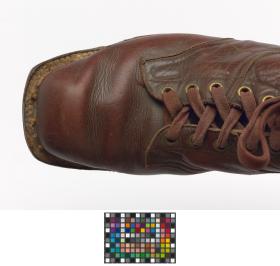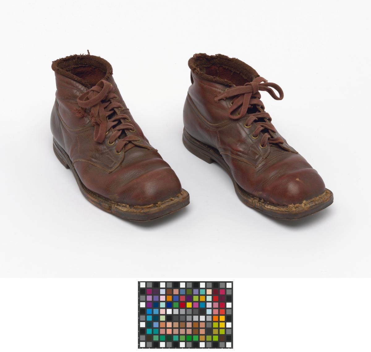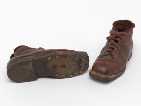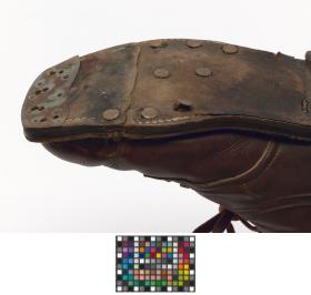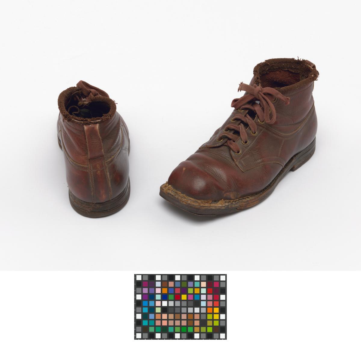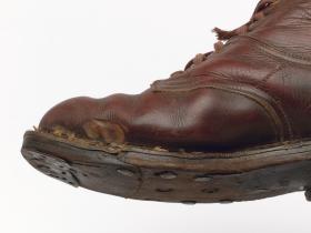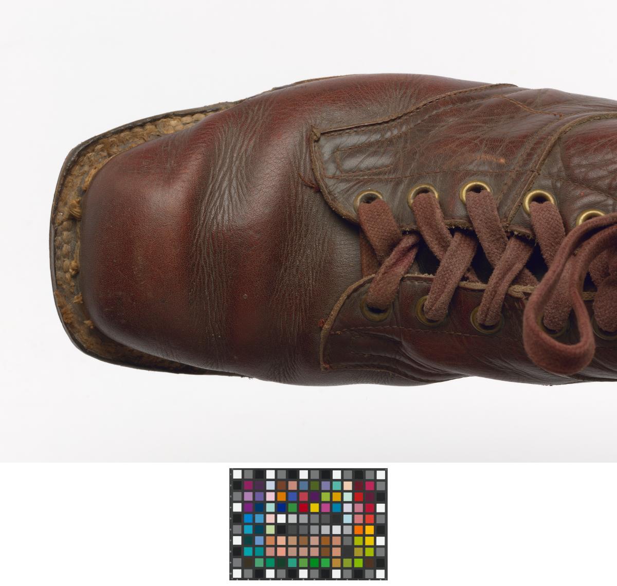 Paire de chaussures de ski nordique datant de la première moitié du 20e siècle.