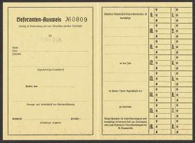 Carte d'accréditation vierge, texte: "Lieferanten-Ausweis / N° 0809".