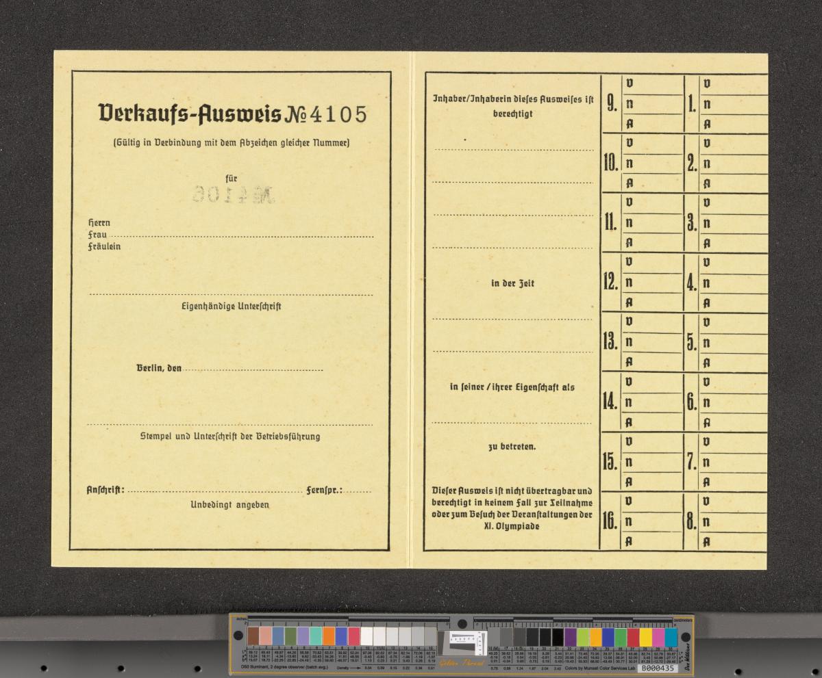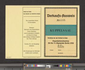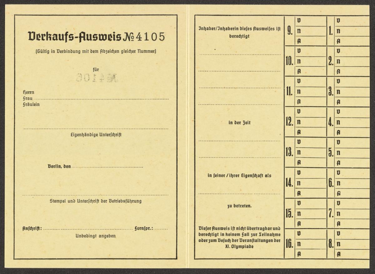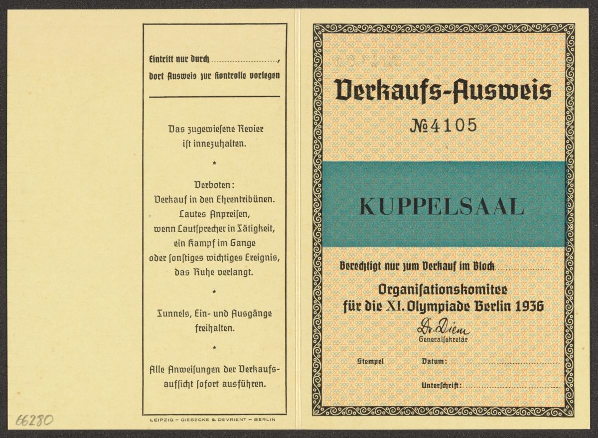 Berlin 1936, carte d'accréditation pour la vente à la Kuppelsaal.