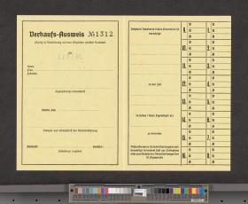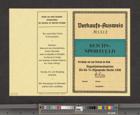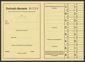 Carte d'accréditation vierge pour les vendeurs, texte: "Verkaufs-Ausweis / N° 1312 / REICHS- / SPORTFELD".