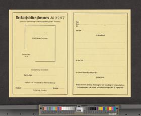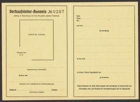 Carte d'accréditation vierge pour les vendeurs, texte: "Verkaufs-Ausweis / N° 0287". Cette carte barrée d'un trait rouge était valable sur tous les sites.