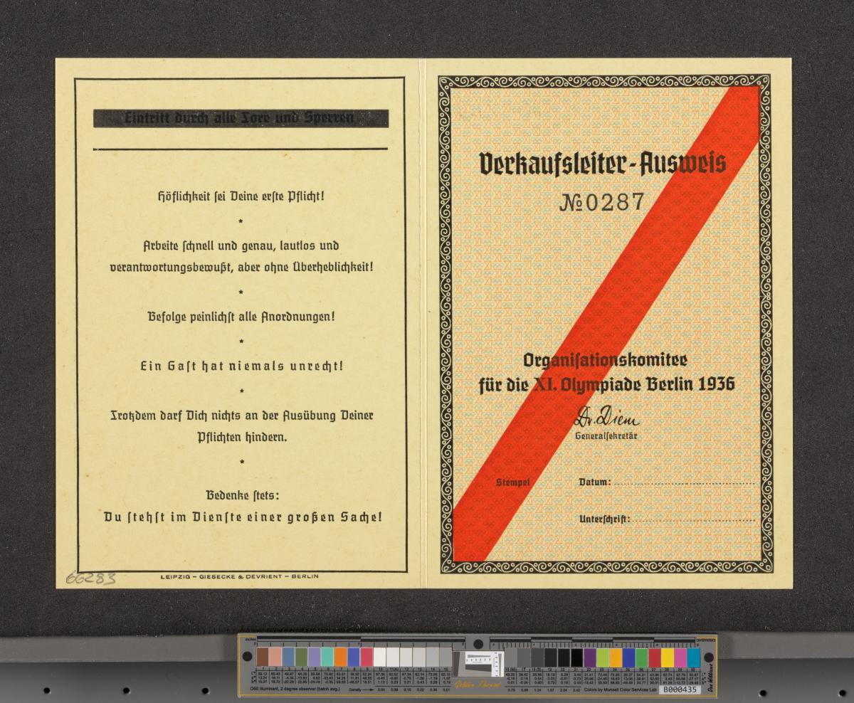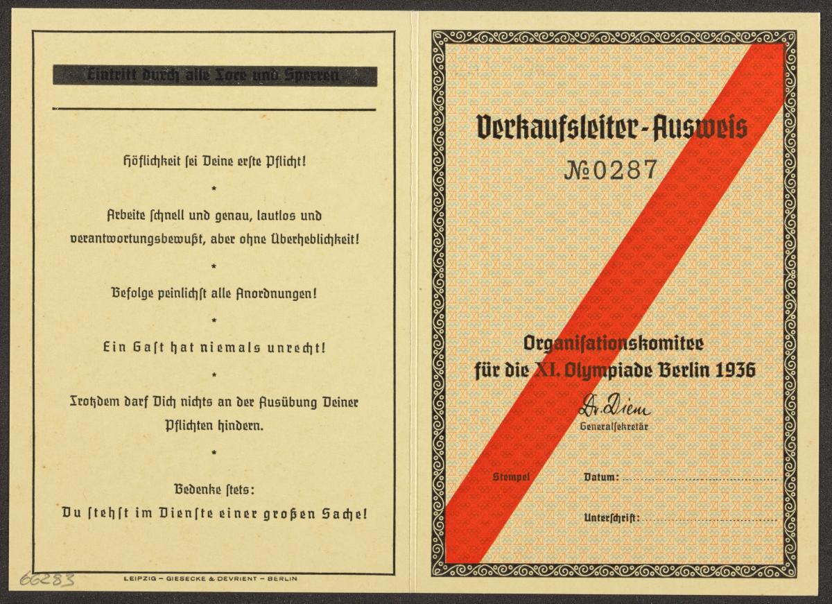 Berlin 1936, carte d'accréditation pour le directeur des ventes.